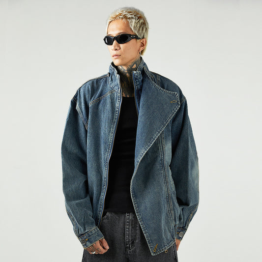 Stand Collar Denim Coat For Men