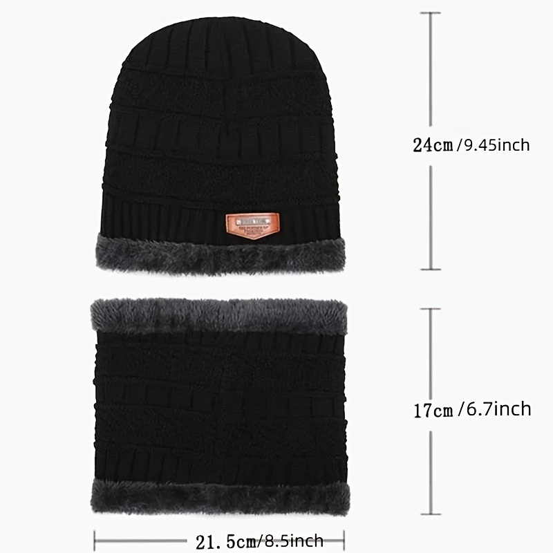 Product Details: A set including a knitted scarf and hat, designed for daily wear with high elasticity, lightweight, and a soft touch. Made of wool and coral fleece. Hat size: 56-58cm (Fits most adult men). Package includes: 1 hat and 1 scarf.