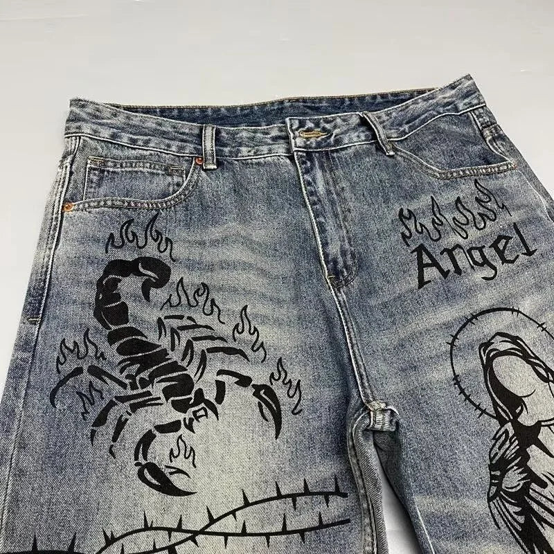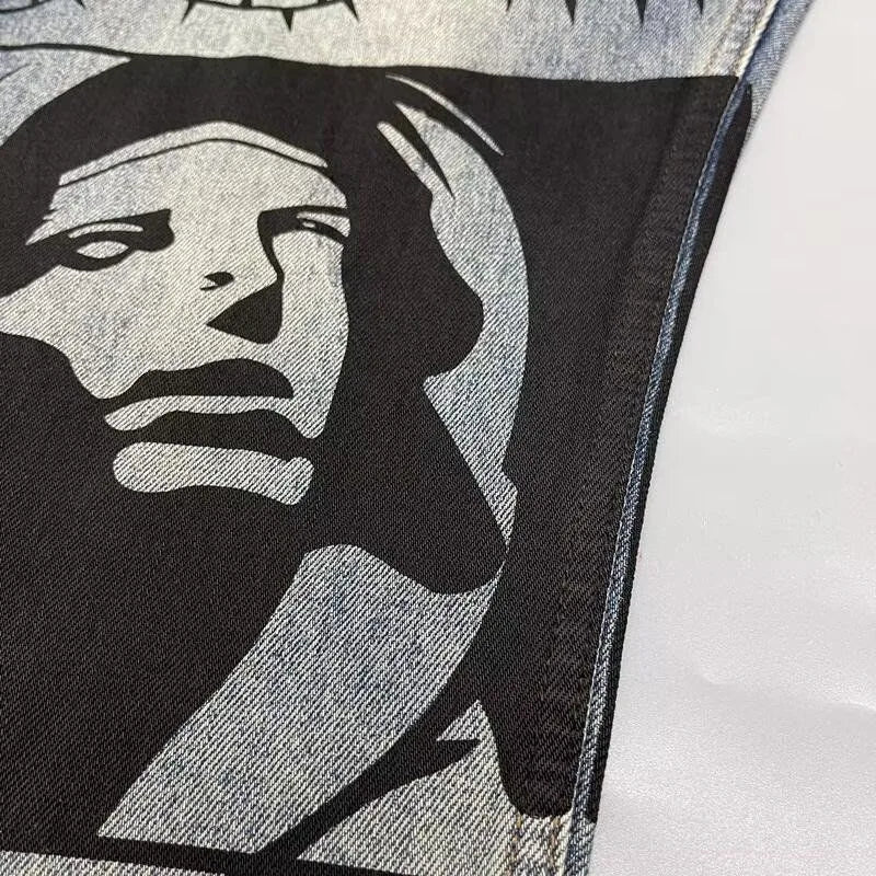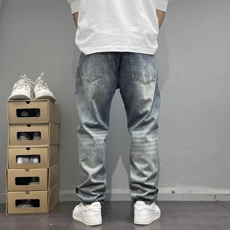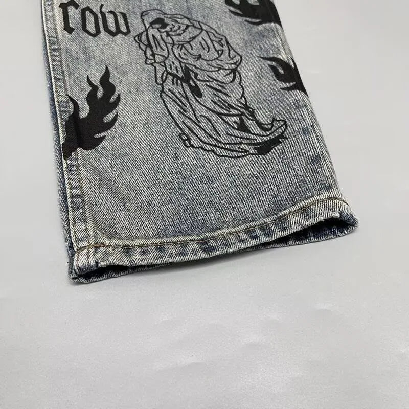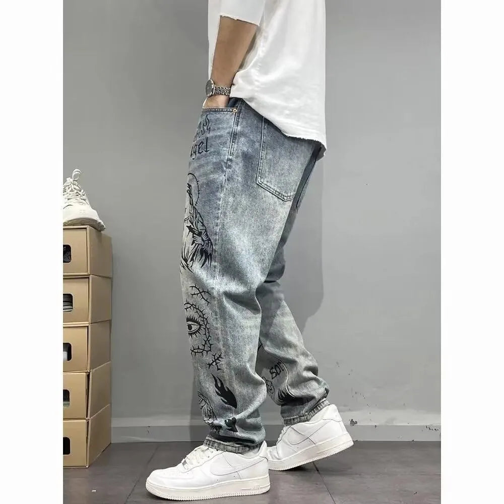 Autumn and Spring New Fashion Trend Printed Straight Leg Sports Denim Pants Men's Loose Comfortable Plus Size High Quality Pants