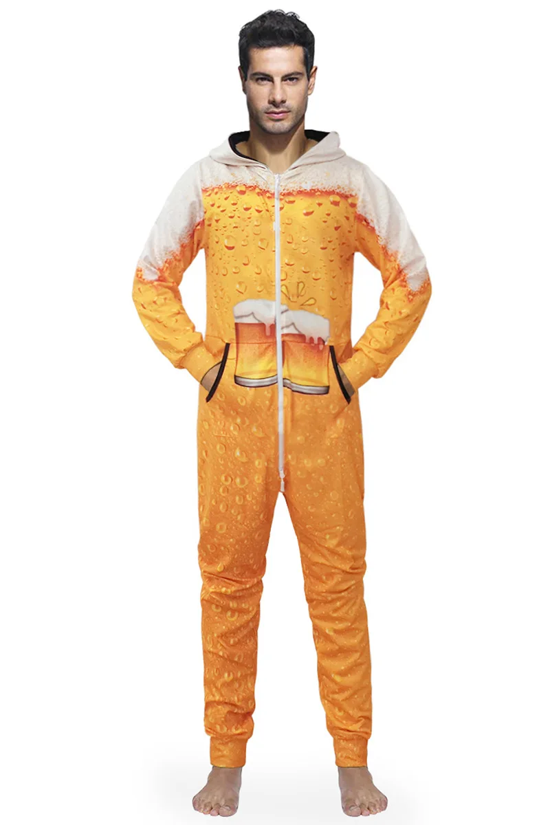 This beer print hooded jacket jumpsuit is the ultimate fashion statement for any beer lover. Made with a high-quality, durable material, this jumpsuit features a unique beer print design and a comfortable hooded jacket style. Perfect for any casual outing, this jumpsuit combines style and comfort seamlessly.