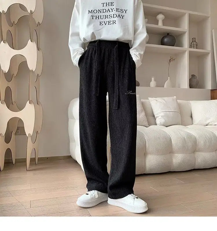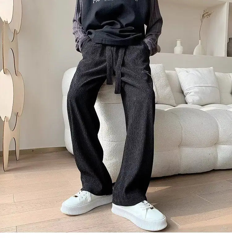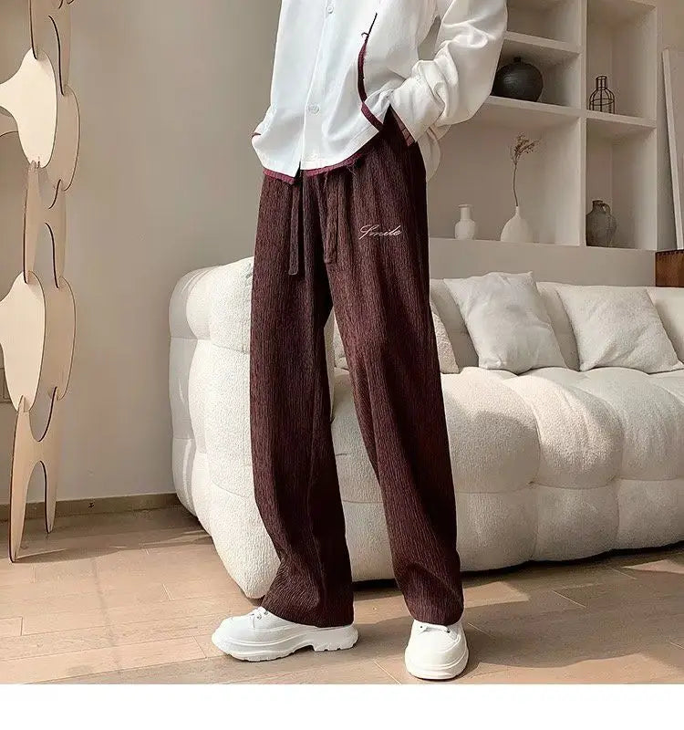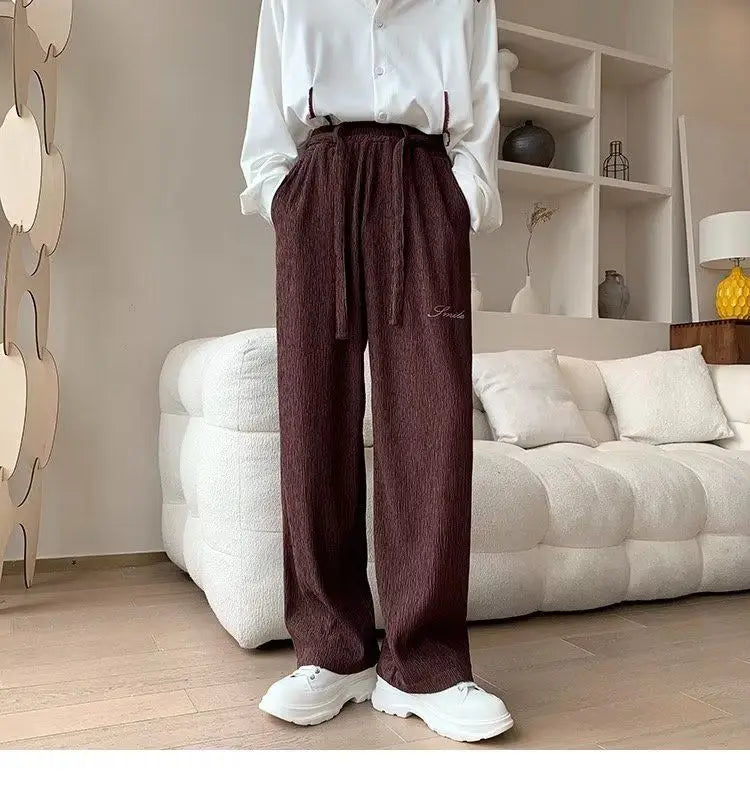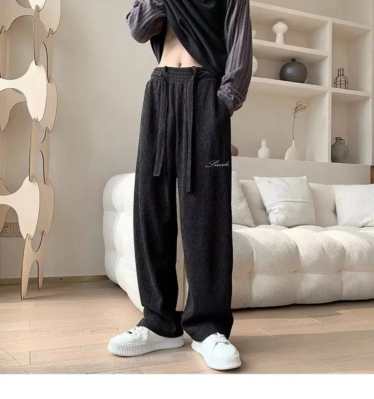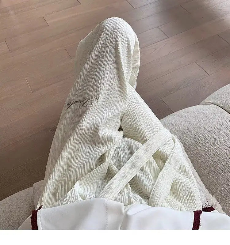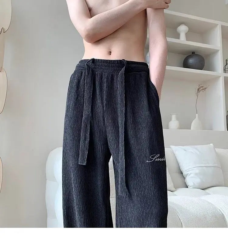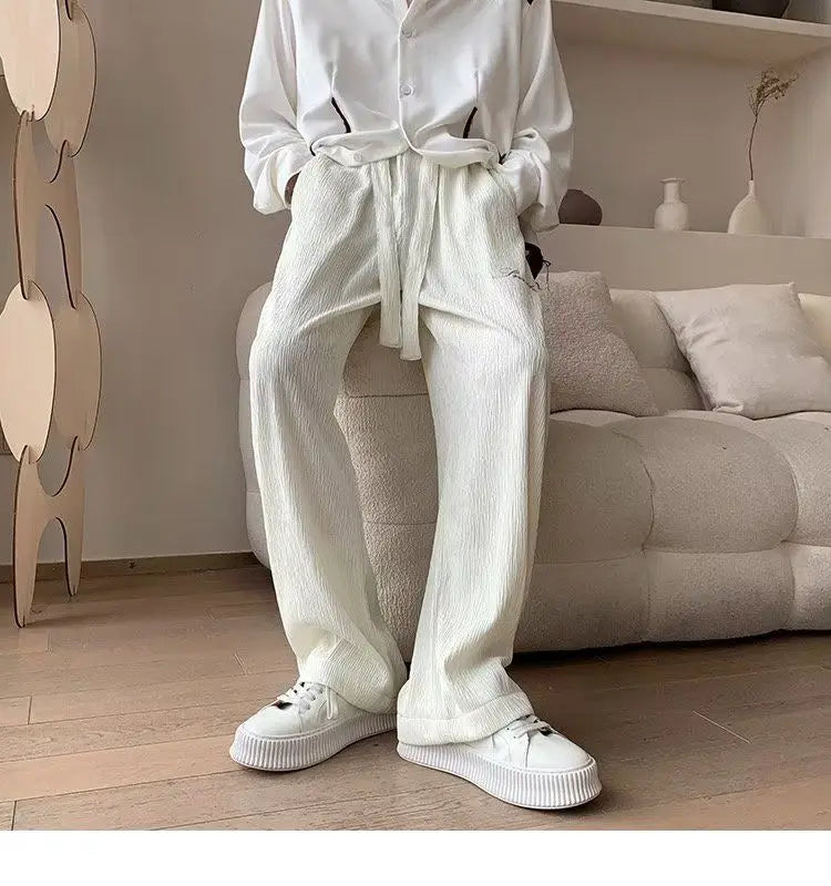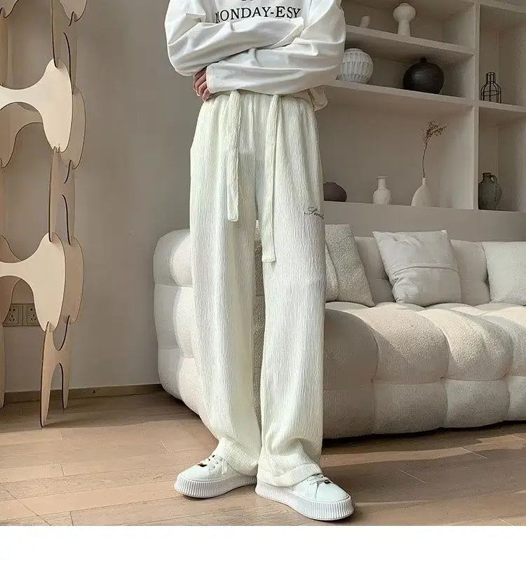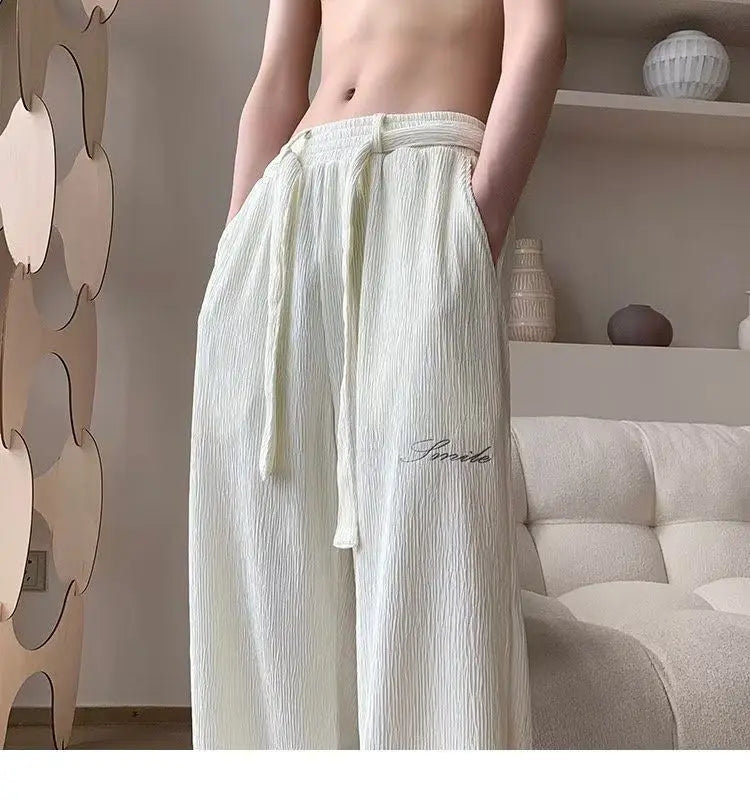 Casual Ice Silk Pants Men Wide Leg Lightweight Baggy Sweatpants White Straight Linen Trousers Male Summer Elastic Hiking