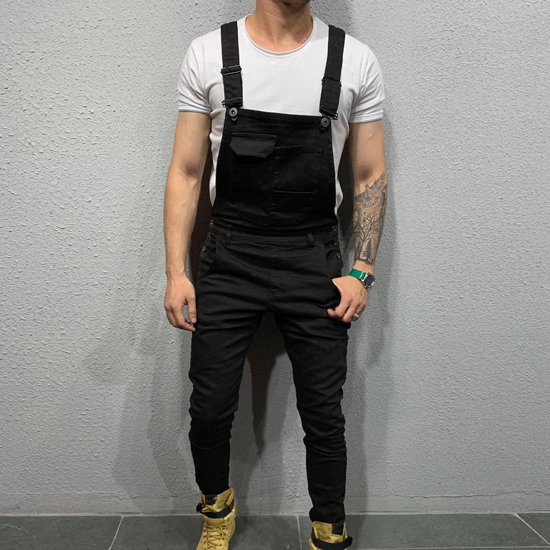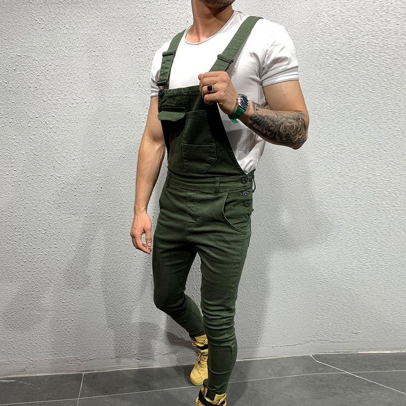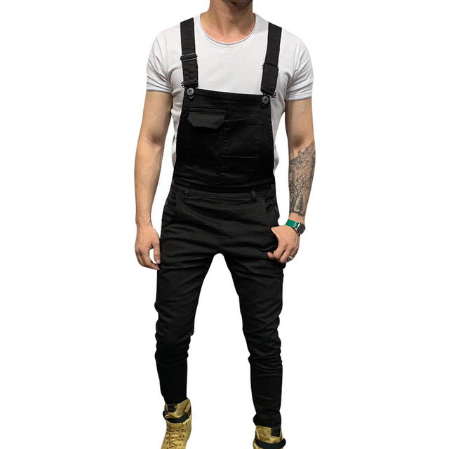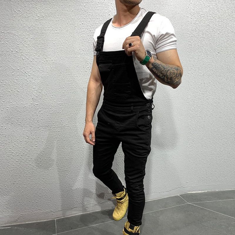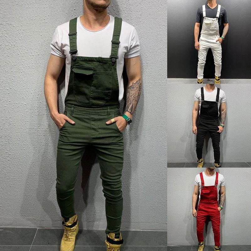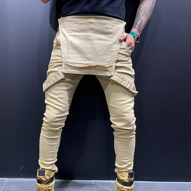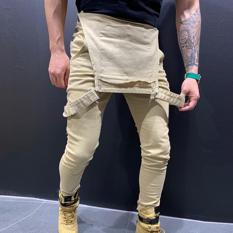 Slim Fit Denim Jumpsuits 2019 High Street Pockets Jeans Men Fashion Casual Suspender Distressed Jeans Pant Modish Strap Overalls