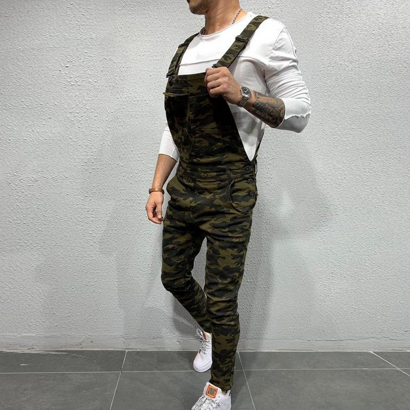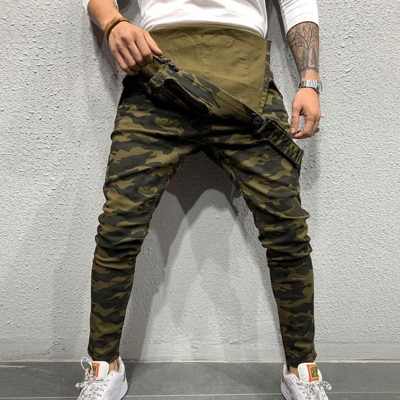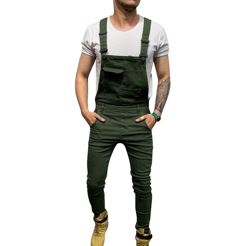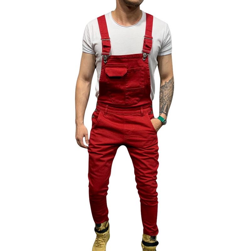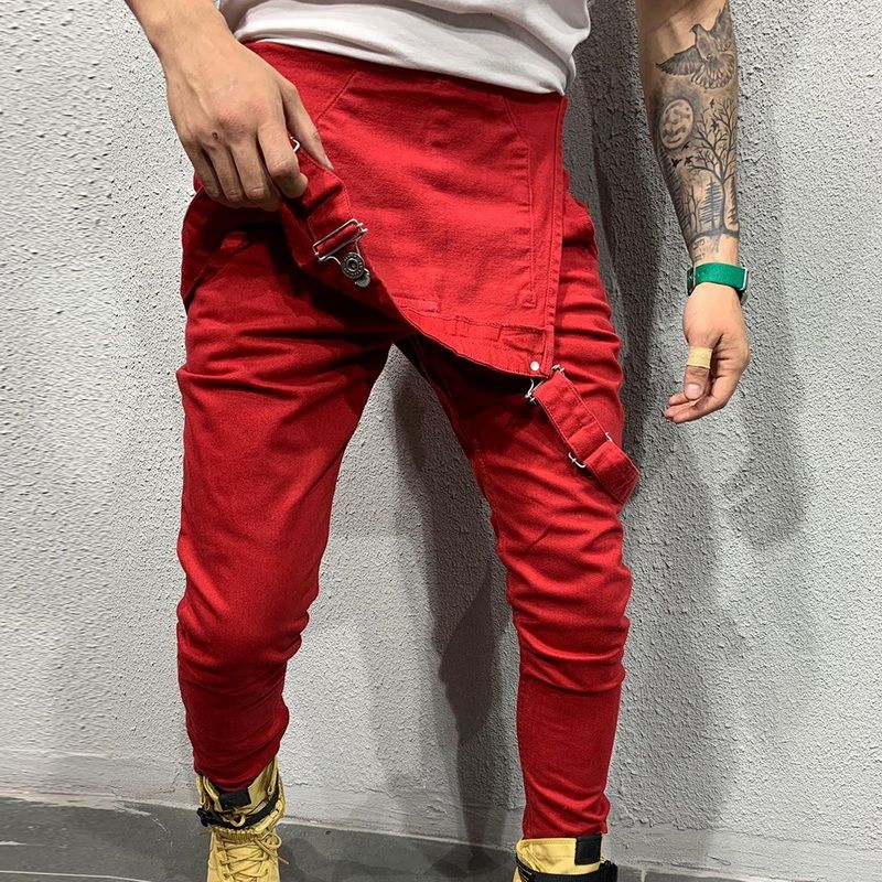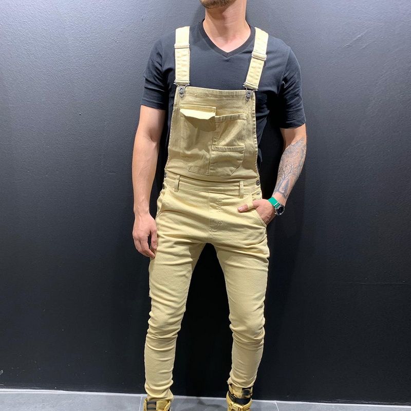 Slim Fit Denim Jumpsuits 2019 High Street Pockets Jeans Men Fashion Casual Suspender Distressed Jeans Pant Modish Strap Overalls