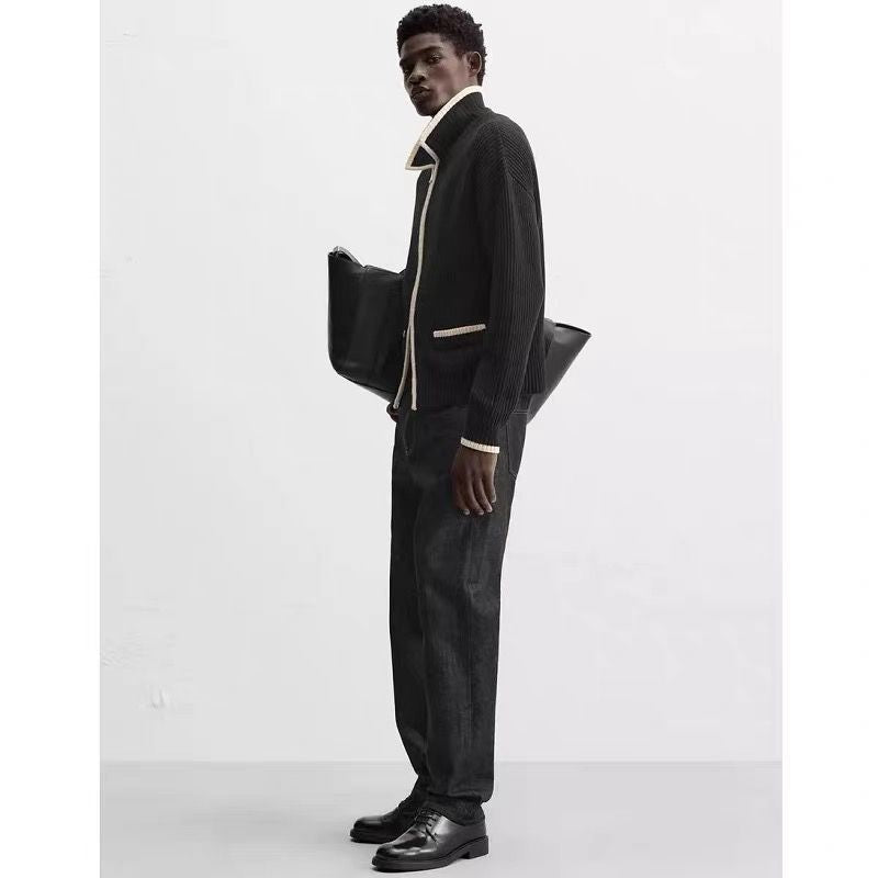 Contrast Color Fashion Zipper Sweater Men's Cardigan Jacket