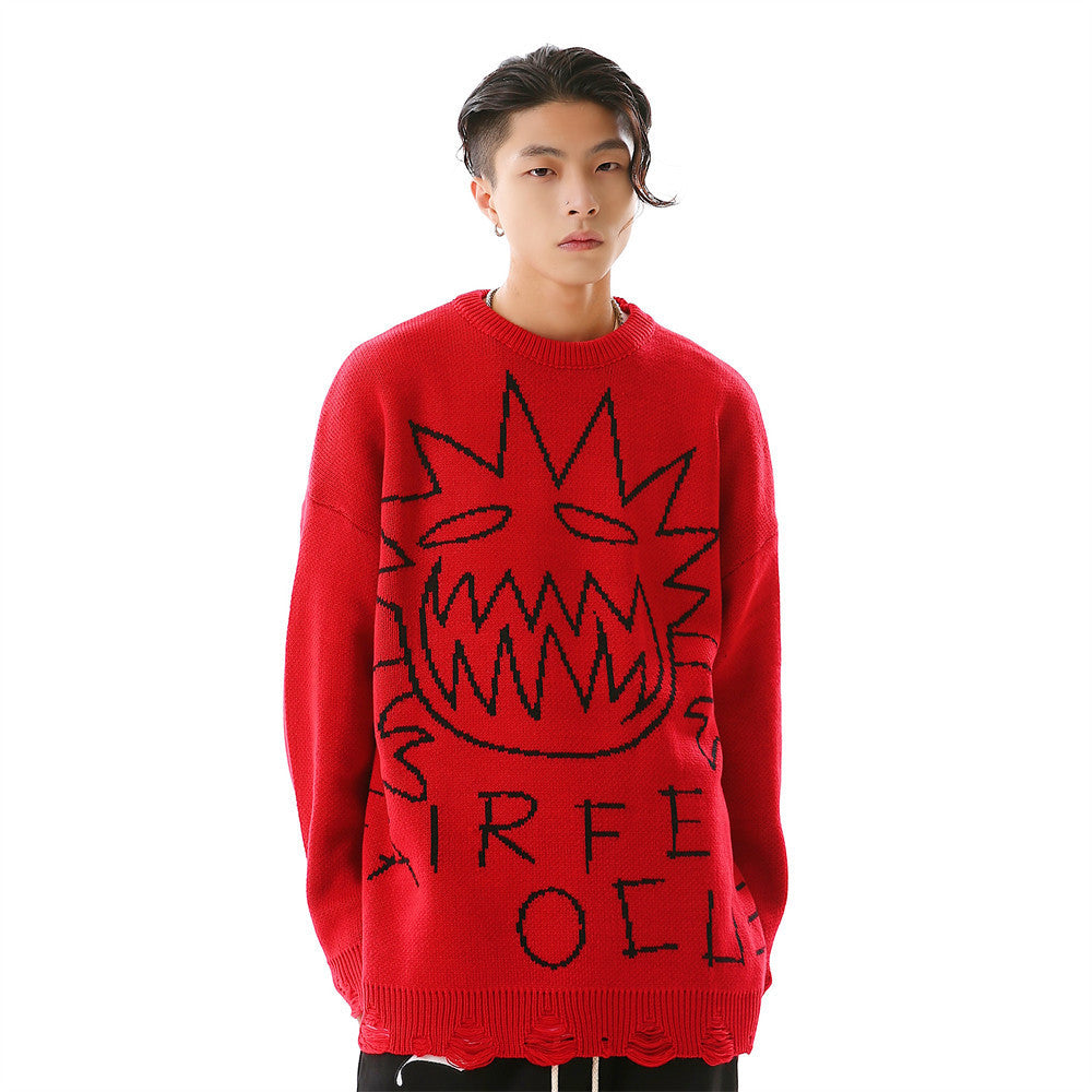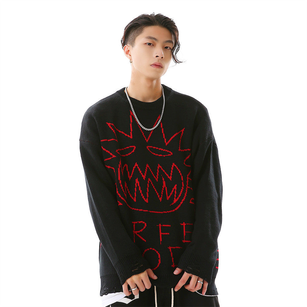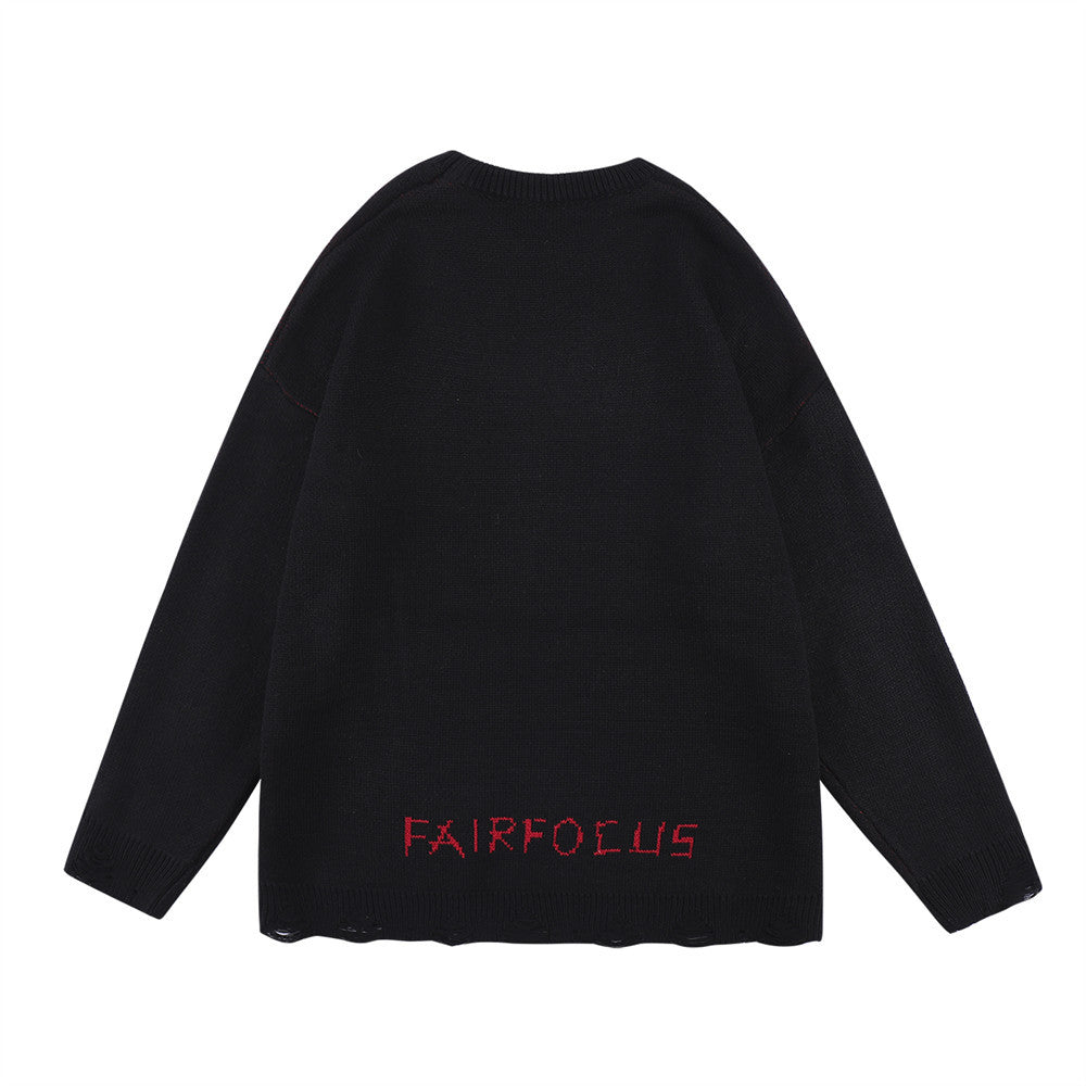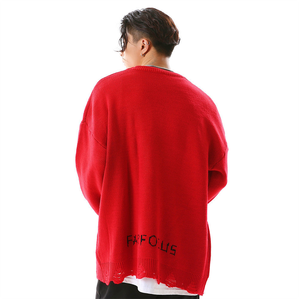 Crew Neck Sweater Men's Crochet Hole Pullover Sweater