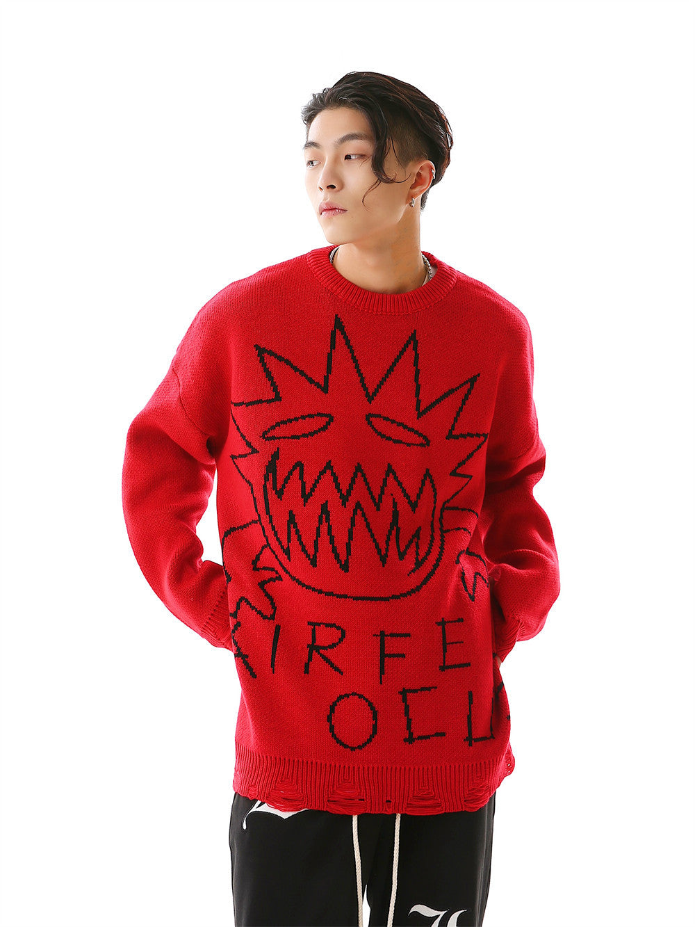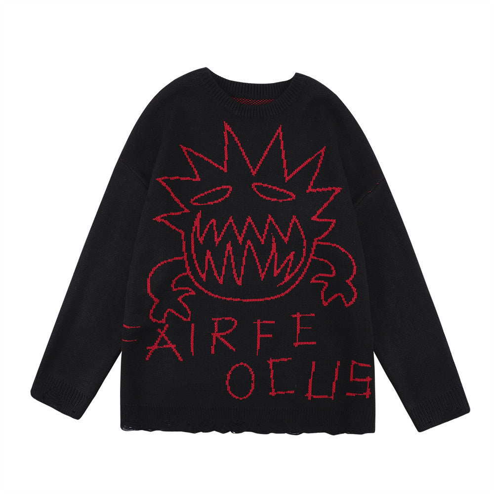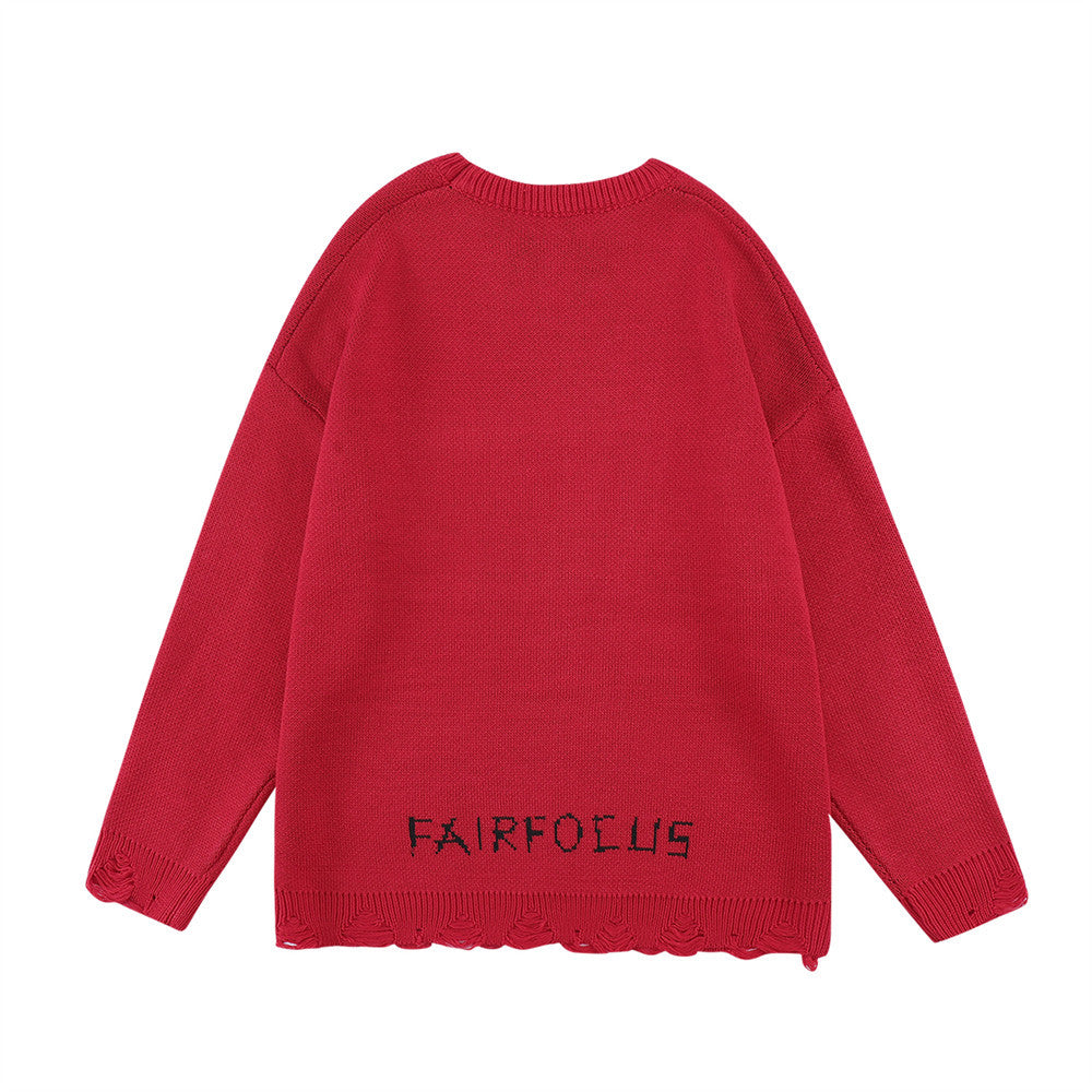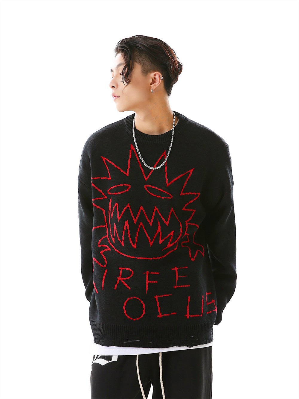Crew Neck Sweater Men's Crochet Hole Pullover Sweater