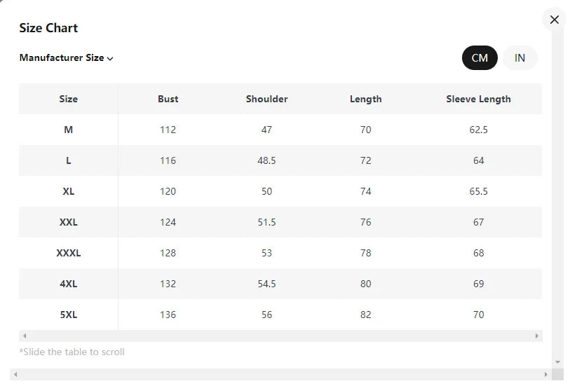 size_info: {"sizeInfoList":[{"length":{"cm":"112","inch":"44.09"},"size":"M","vid":-1},{"length":{"cm":"116","inch":"45.67"},"size":"L","vid":-2},{"length":{"cm":"120","inch":"47.24"},"size":"XL","vid":-3},{"length":{"cm":"124","inch":"48.82"},"size":"XXL","vid":-4},{"length":{"cm":"128","inch":"50.39"},"size":"XXXL","vid":-5},{"length":{"cm":"132","inch":"51.97"},"size":"4XL","vid":-6},{"length":{"cm":"136","inch":"53.54"},"size":"5XL","vid":-7}]}