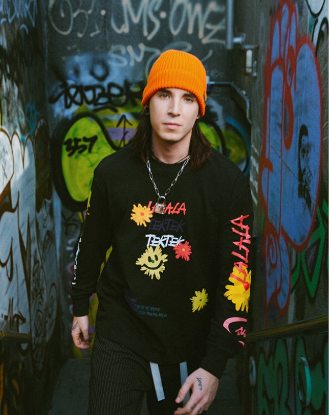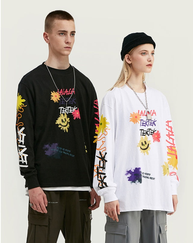 This Doodle long-sleeve t-shirt is made with soft and breathable fabric that allows for comfortable wear all day long. The unique doodle design adds a touch of creativity to your wardrobe. Made for everyday wear, this t-shirt is perfect for any casual occasion.