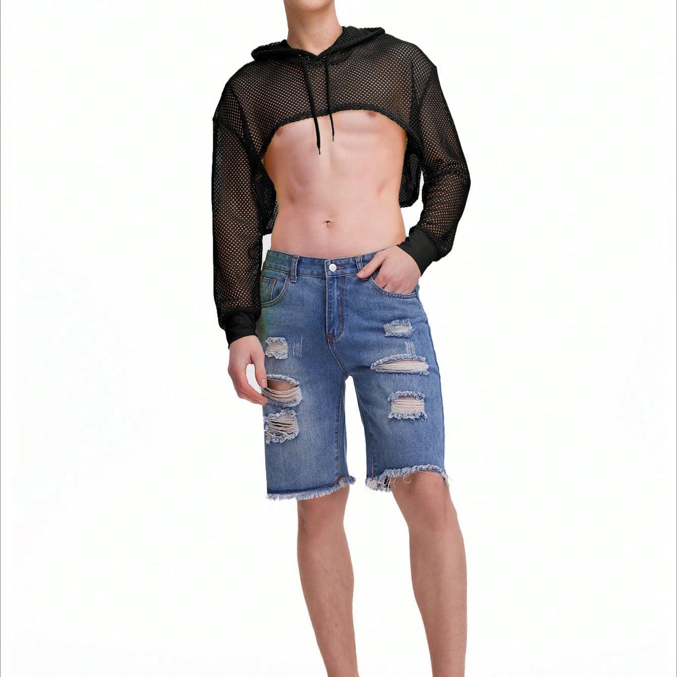 European And American-style Men's Micro-transparent Sexy Cutout Top Men