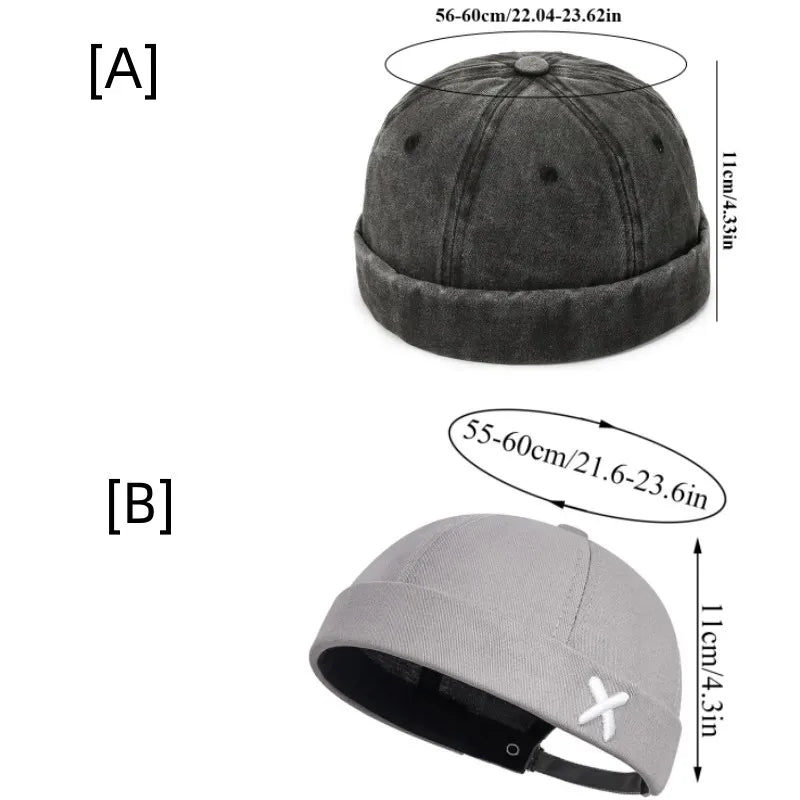 Fashion Denim Docker Cap Brimless Hat Solid Skullcap Solid Color Sailor Cap Beanie Hats Men Women Bucket Cap Adjustable Dad Hat