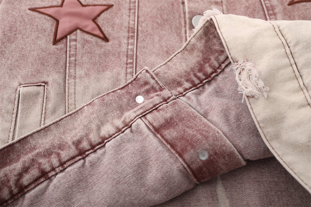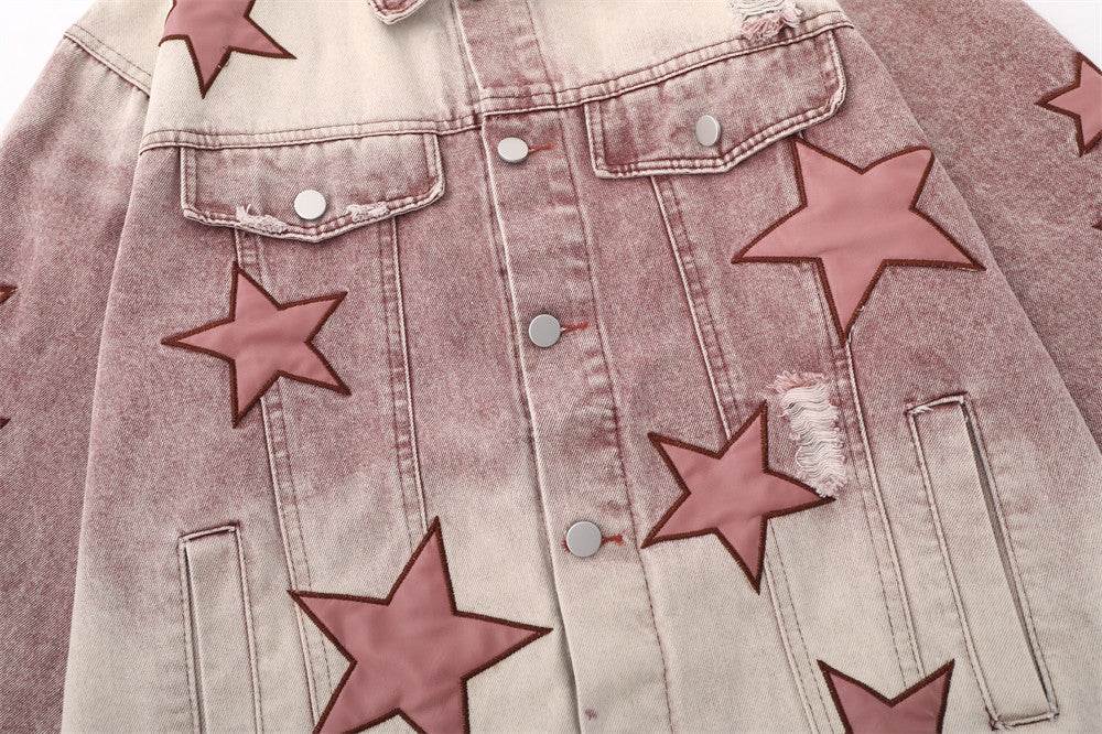 This Five-pointed Star Embroidery Denim Jacket for Men is a stylish and versatile addition to any wardrobe. Crafted with intricate embroidery, it adds a touch of uniqueness to your look. Made with durable denim fabric, it offers both comfort and durability. Upgrade your style with this eye-catching jacket.