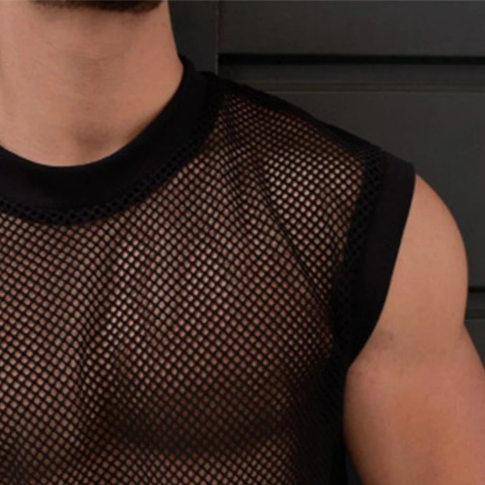 * Item Features:Mens ,See-through ,Mesh ,T shirt, Crew Neck ,Tank Tops ,Bodybuilding,Sleeveless ,Streetwea,Vest ,Party Nightclubs