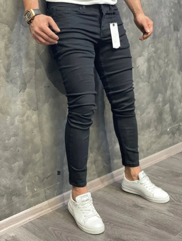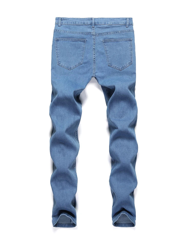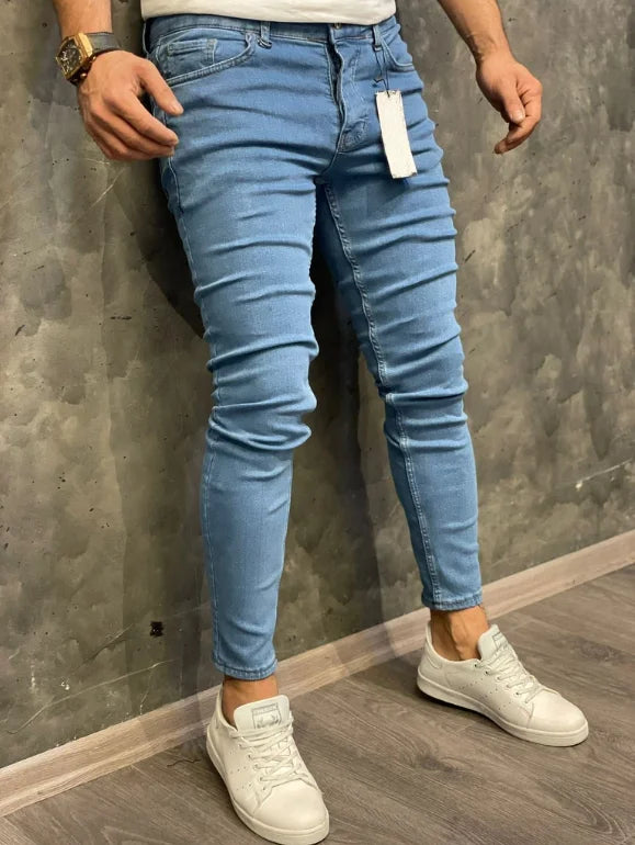 High Quality Fashion European American Classic Solid Washing Denim Pants Casual Men's Stretch Trouser Blue Skinny Jeans Men