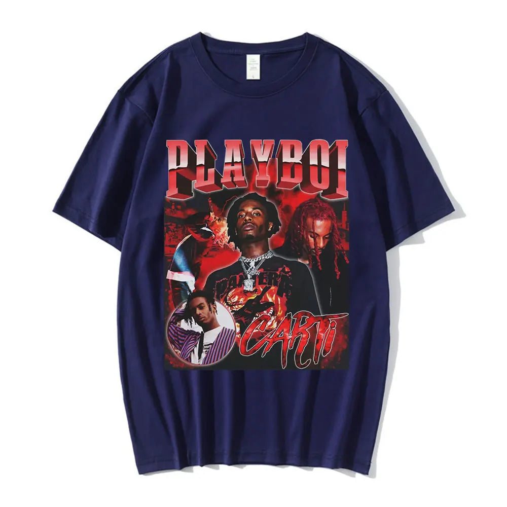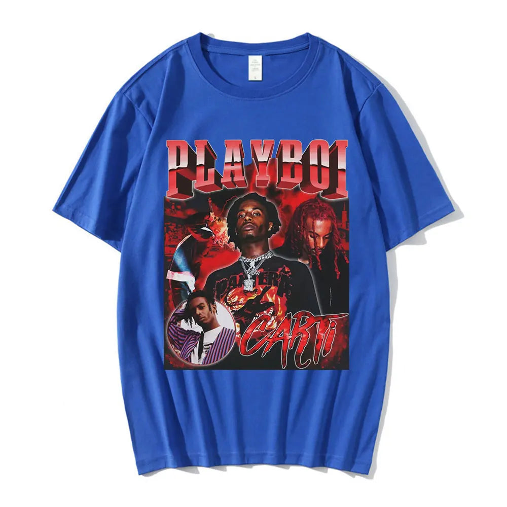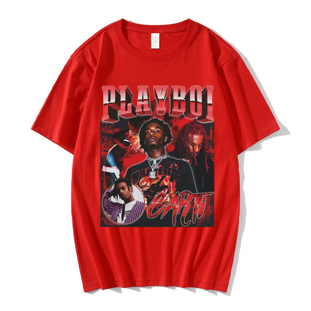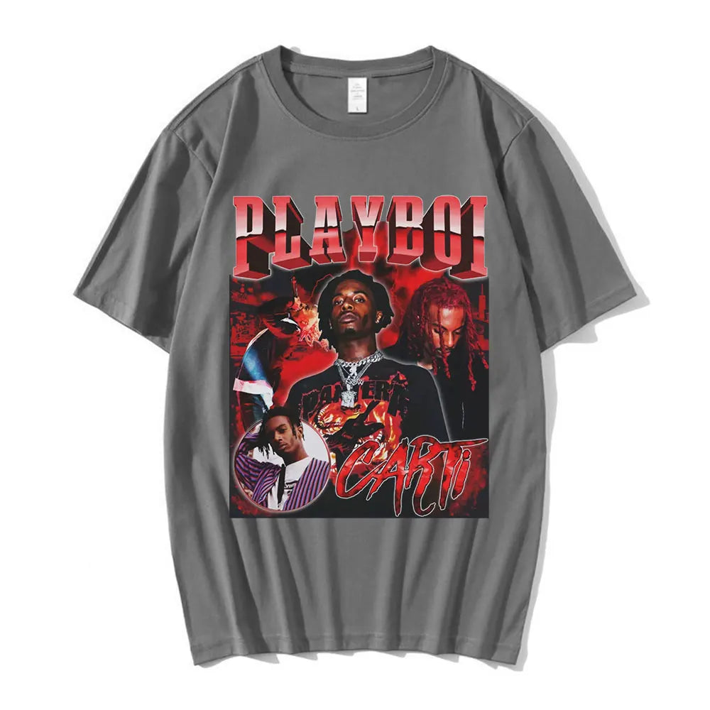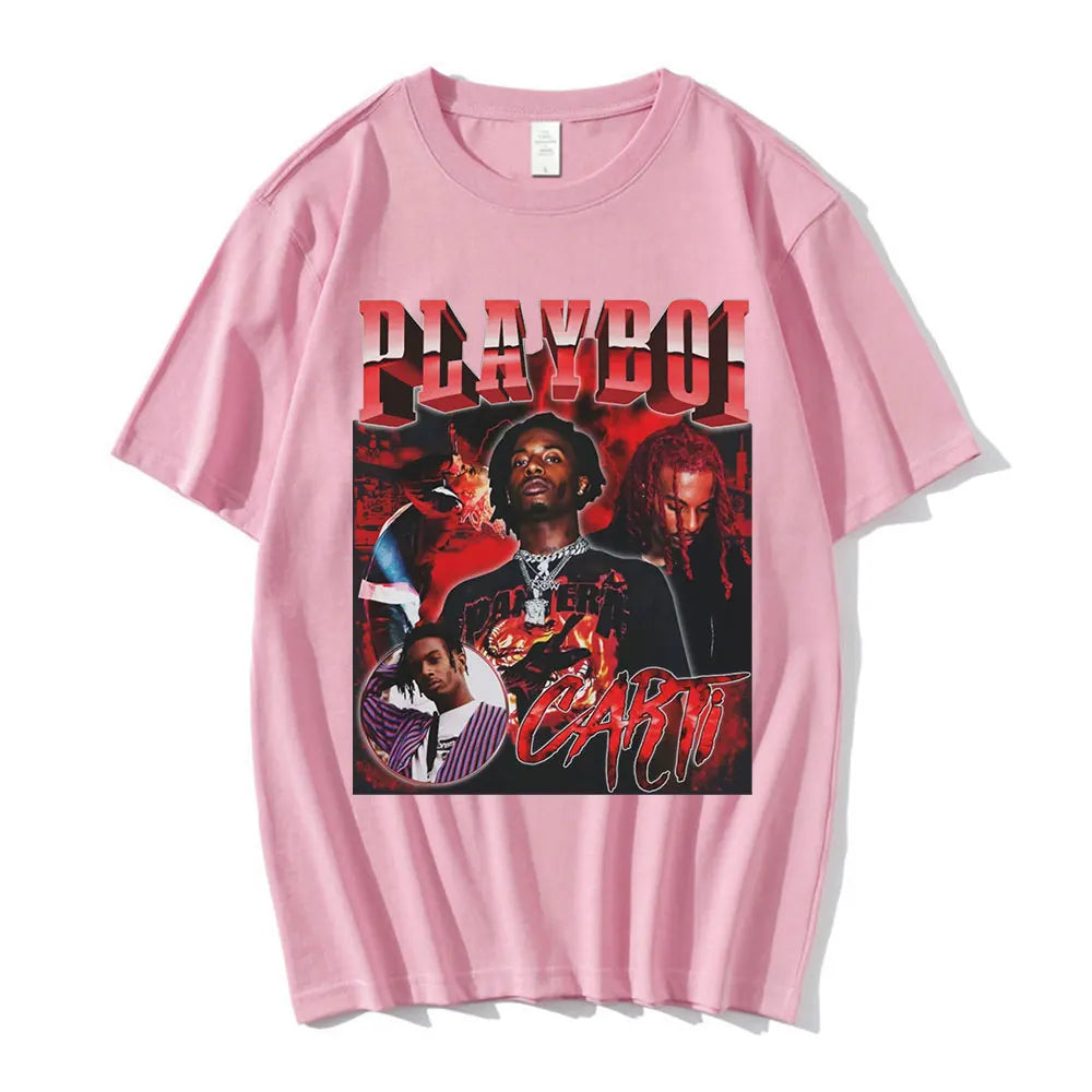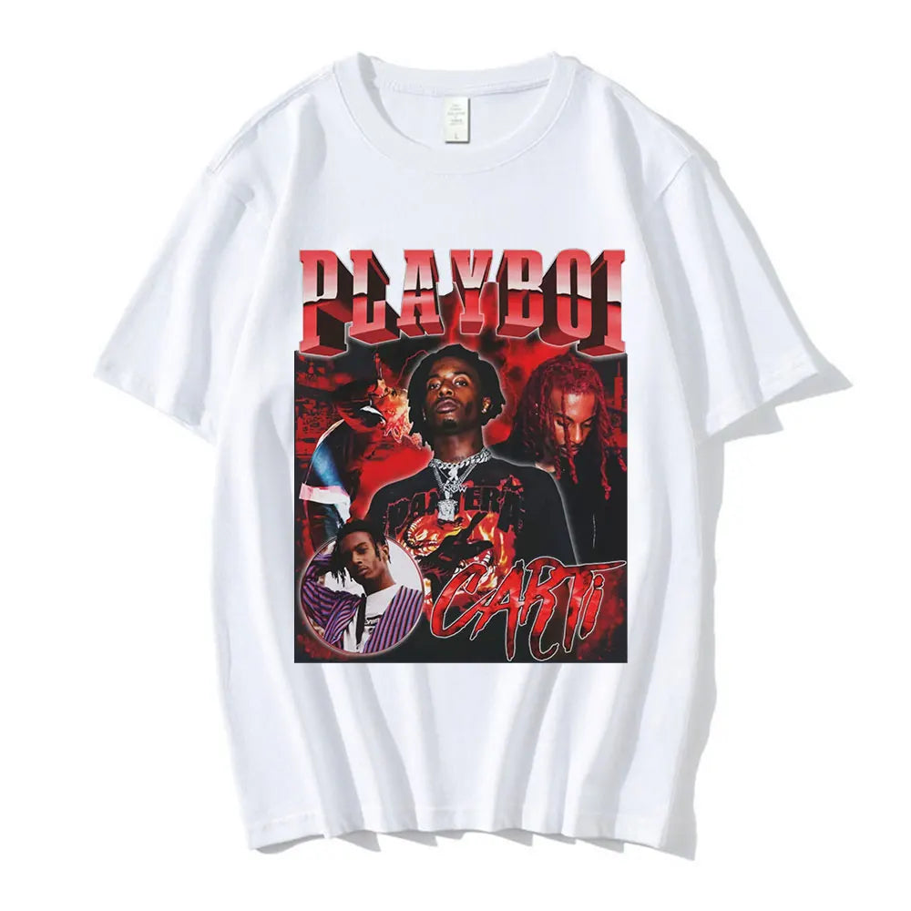 Hip Hop Rapper Playboi Carti T shirt Men Women Graphic Print T-shirts Oversized Streetwear Short Sleeve Male Cotton T-shirt