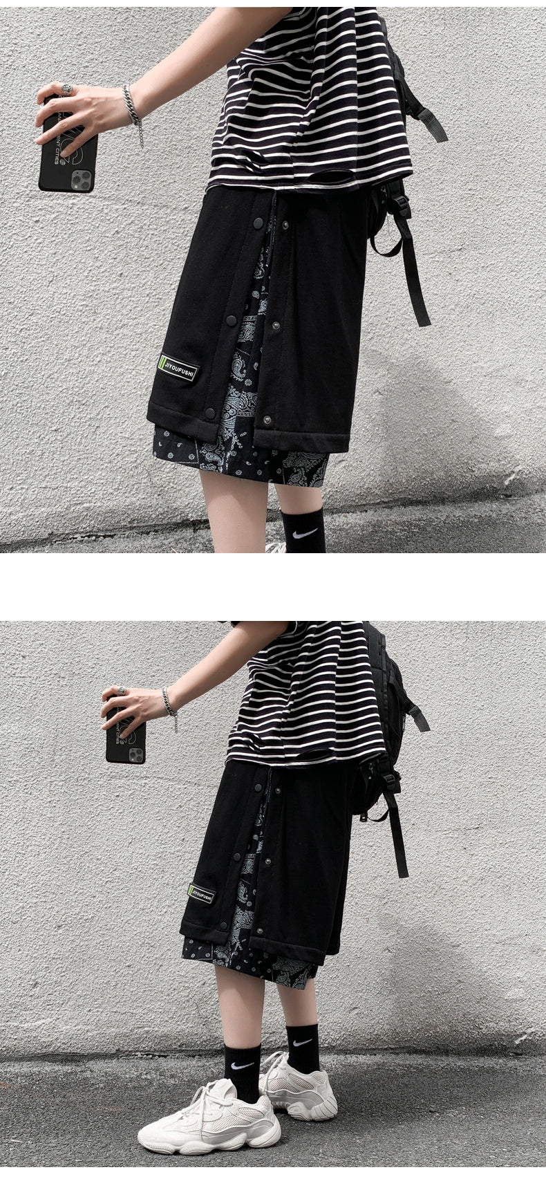 Hong Kong Style Breasted Shorts Men''s Hip Hop Cashew Flower Stitching Loose Fashion