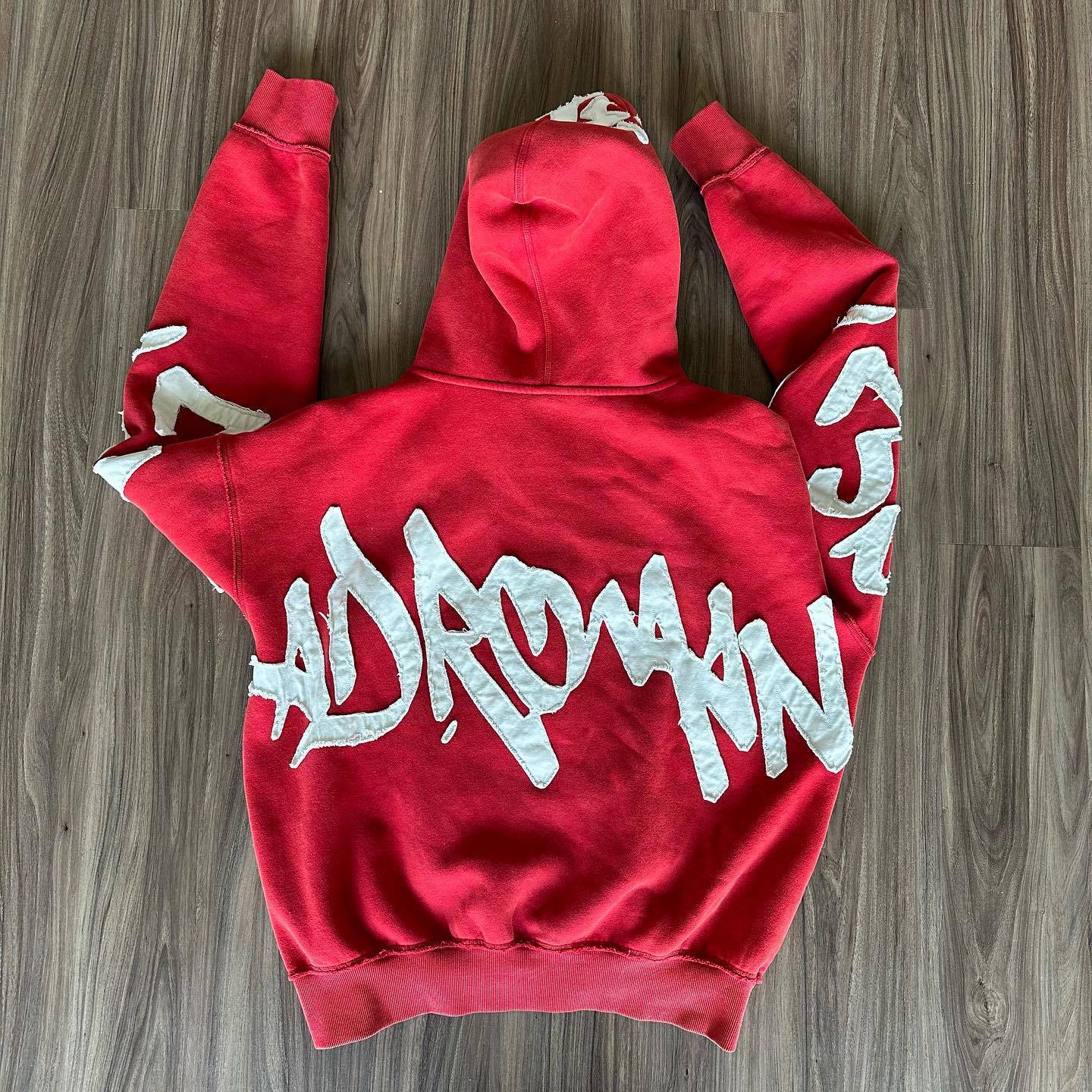 Hooded 3D Letter Print Loose Zip-Up Sweatshirt