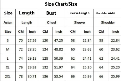 1. Asian sizes are 1 to 2 sizes smaller than European and American people. Choose the larger size if your size between two sizes. Please allow 2-3cm differences due to manual measurement. 2. Please check the size chart carefully before you buy the item, if you don't know how to choose size, please contact our customer service. 3.As you know, the different computers display colors differently, the color of the actual item may vary slightly from the following images.