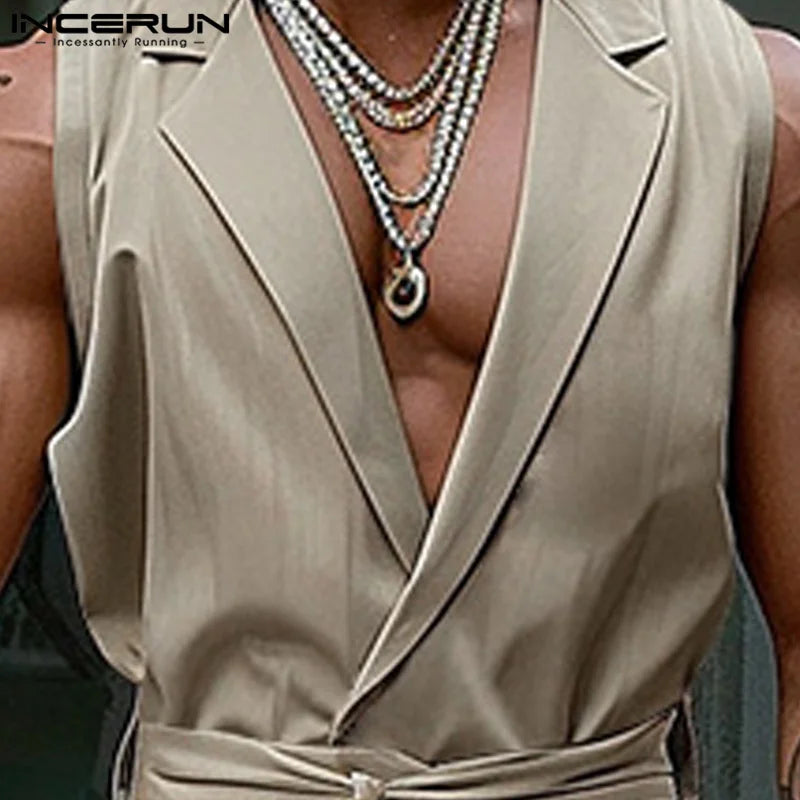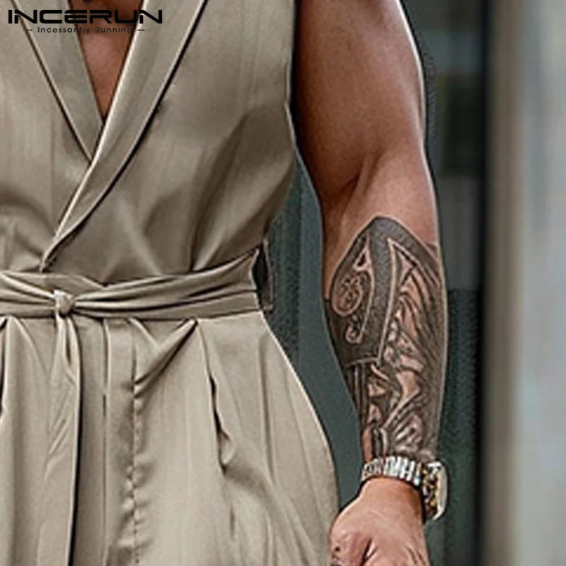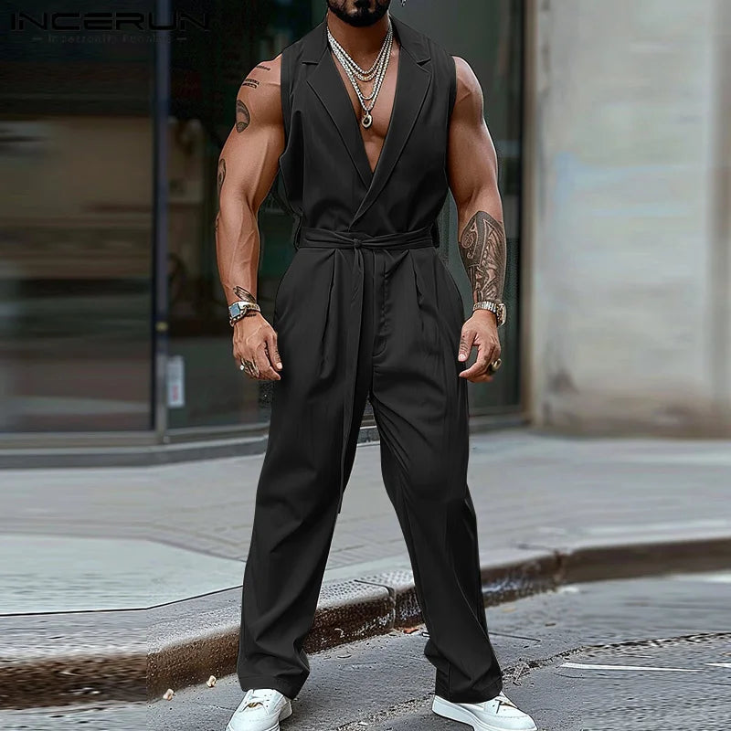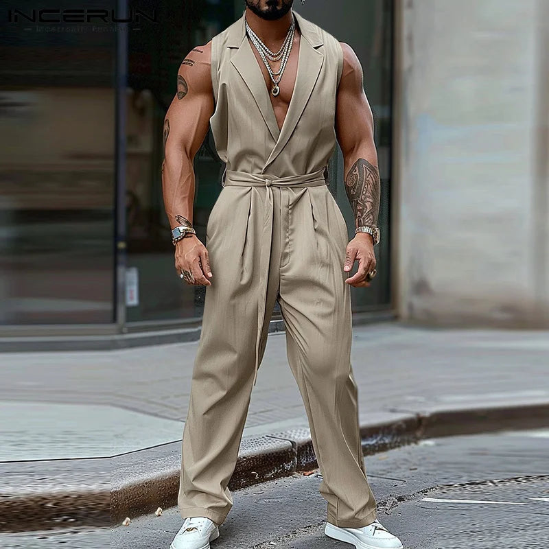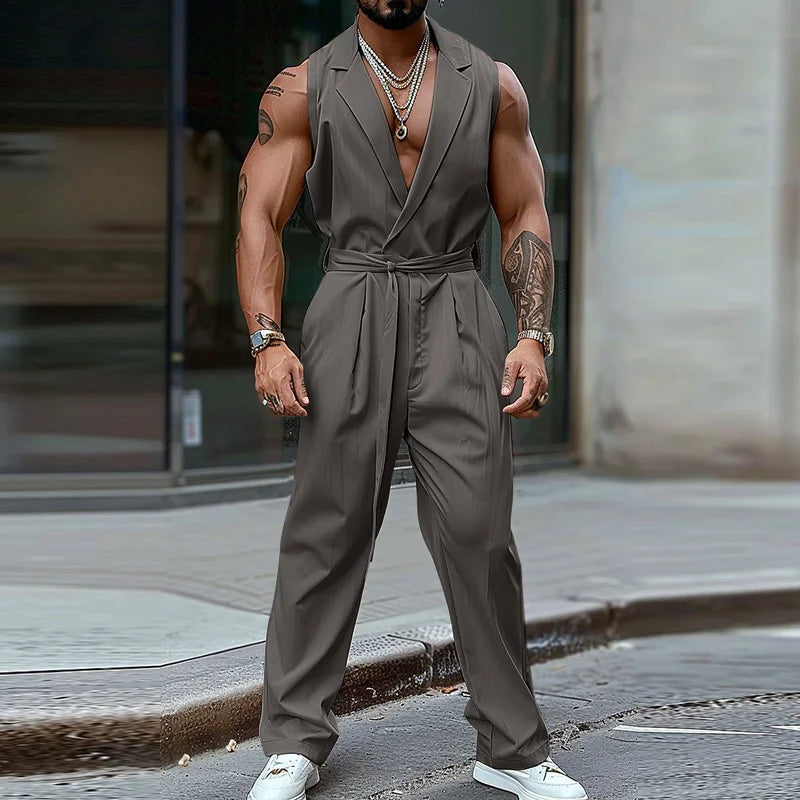 Product Description:Men's solid color sleeveless jumpsuits.