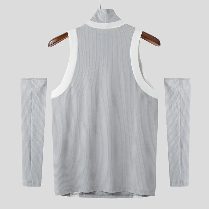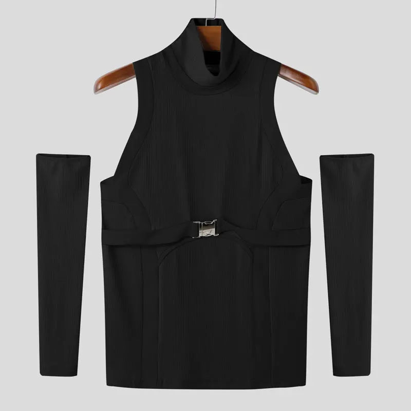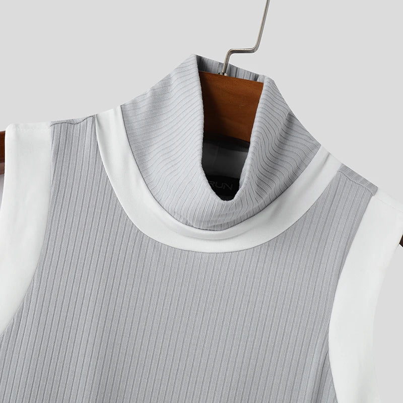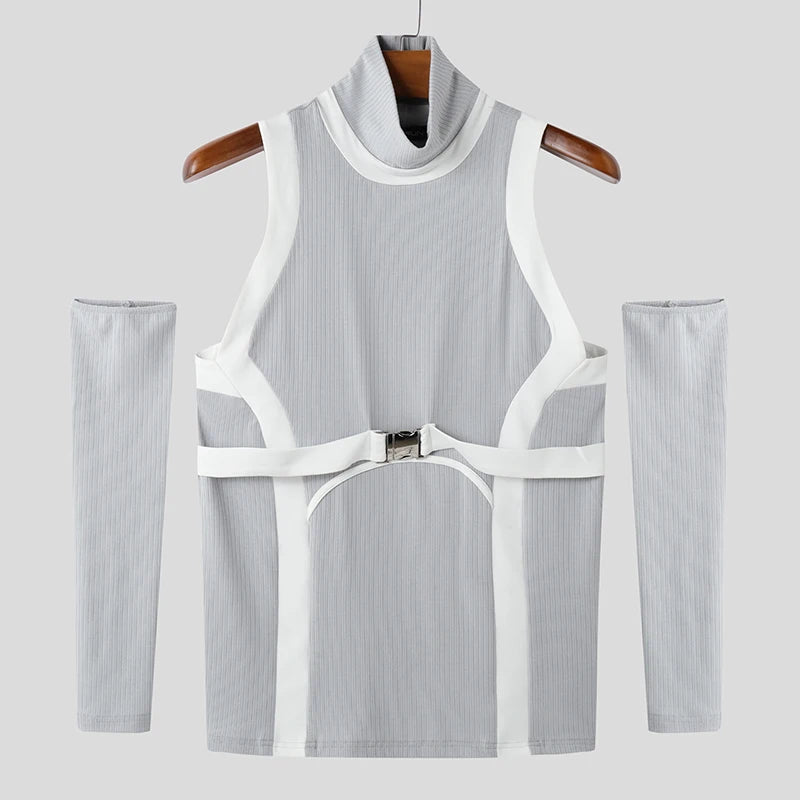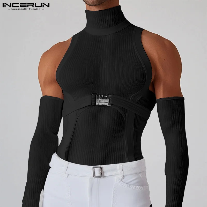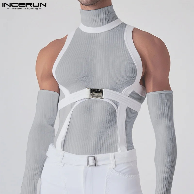 INCERUN 2025 Men T Shirts Patchwork Turtleneck Off Shoulder Long Sleeve Casual Men Clothing Streetwear Sexy Unisex Tee Tops