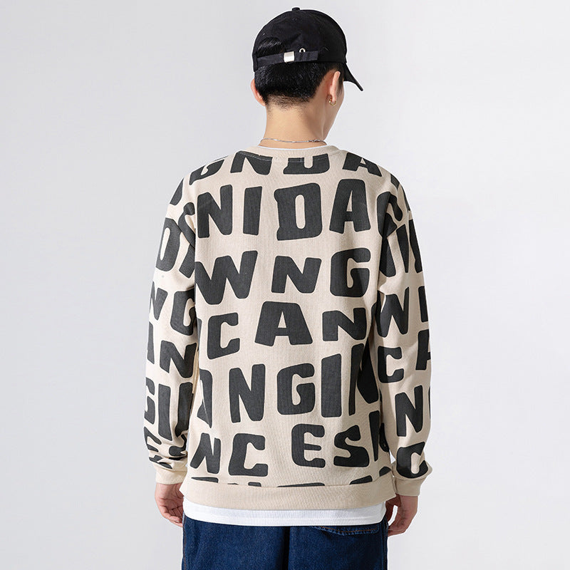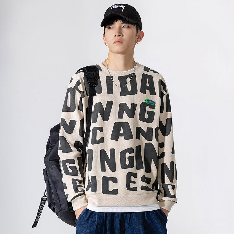 Japanese Men's Autumn And Winter New Round Neck Letter Printing