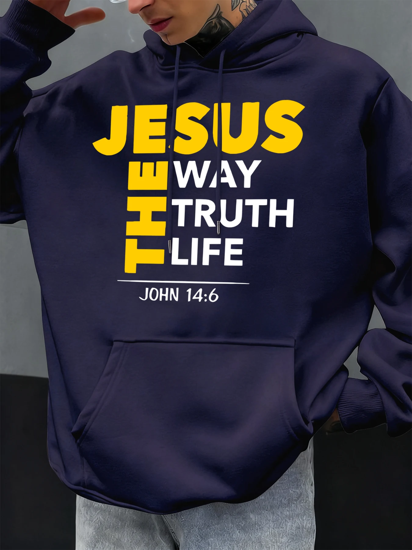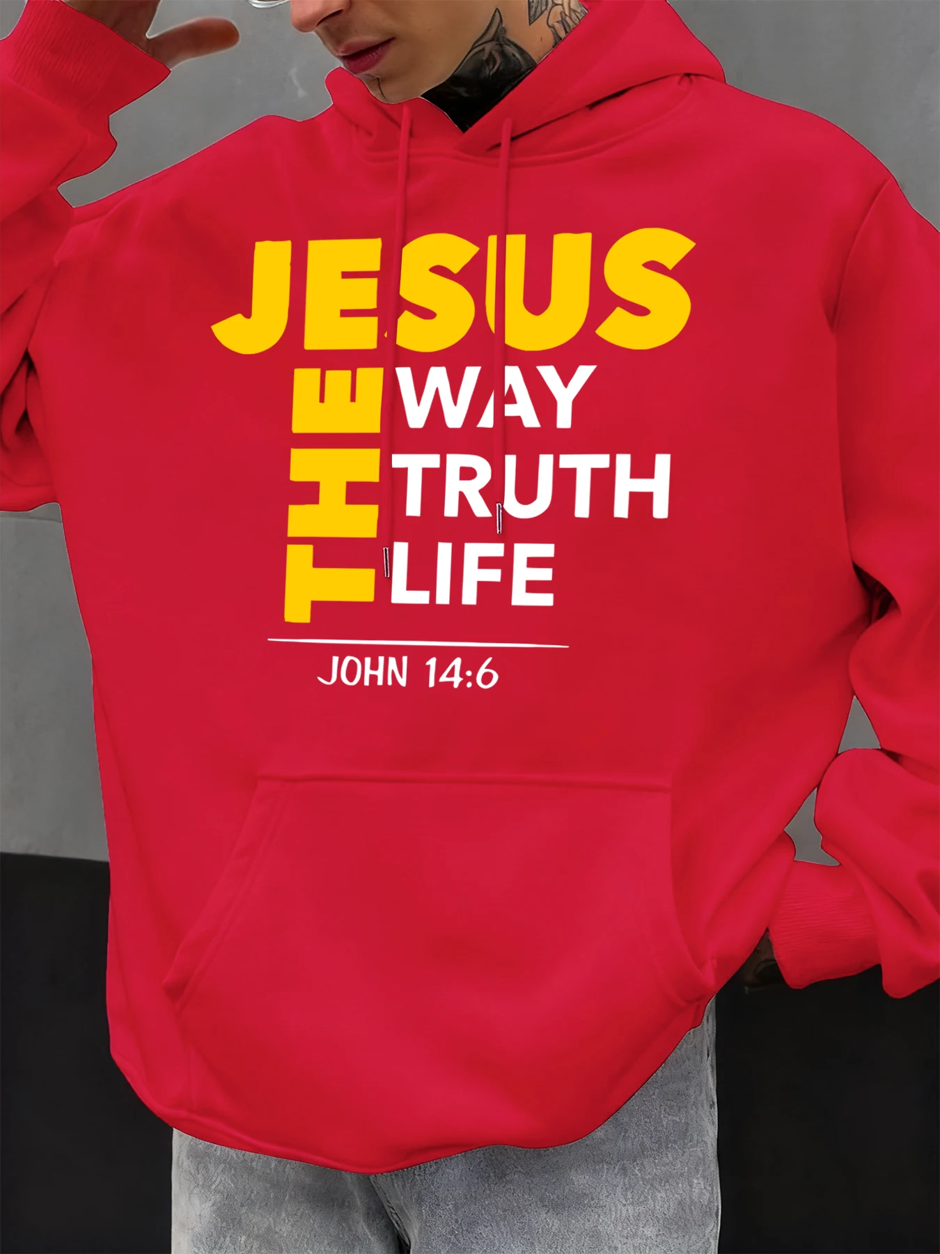 Jesus The Way Truth Life Prints Men Hoodie Autumn Loose Clothing Pocket Hip Hop Pullover Fleece Casual Fashion Sportswear