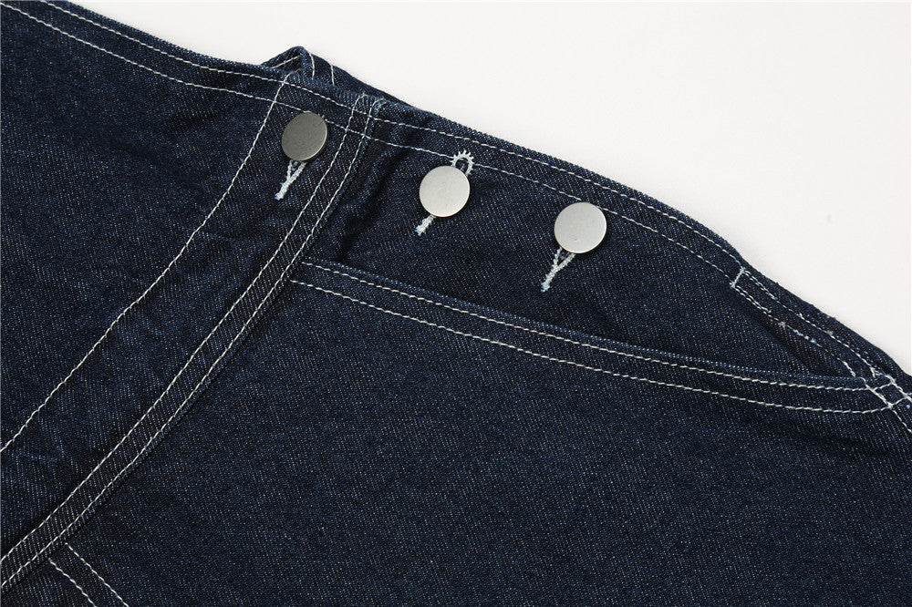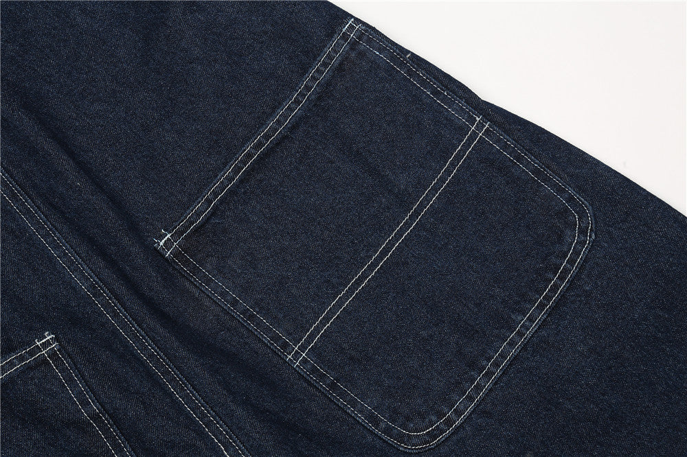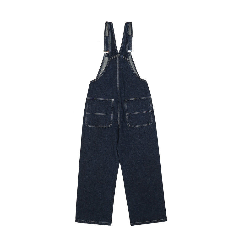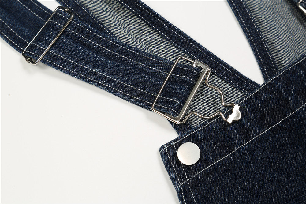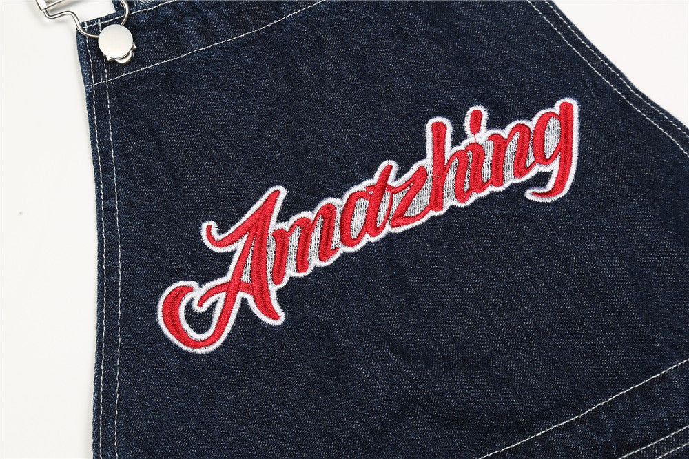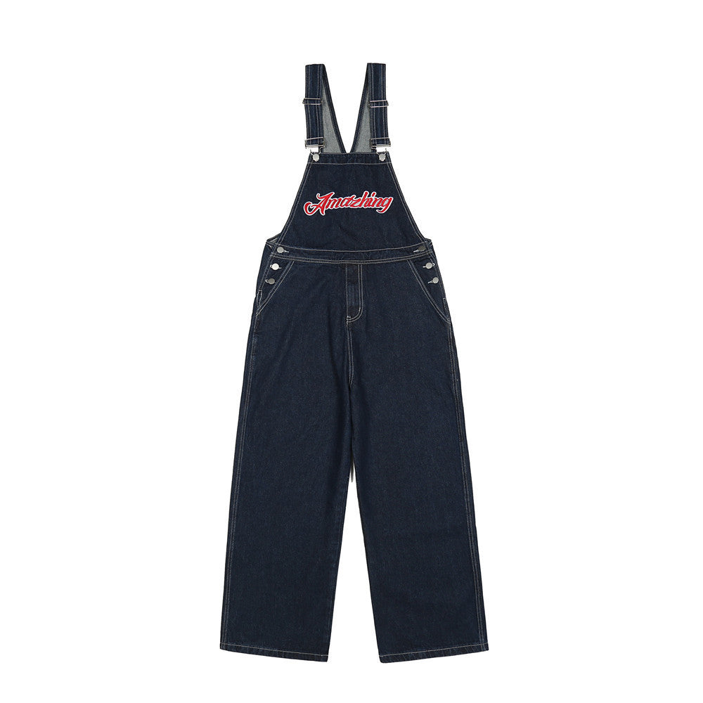 Letter Embroidery Denim Suspender Pants Men