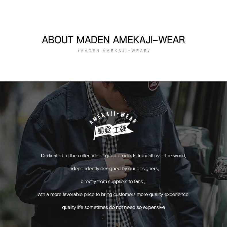 Maden 2023 Spring Vintage Asymmetric Pockets Men's Jackets Amekaji 100% Cotton Navy Blue Outerwears Casual Essential Washed Coat