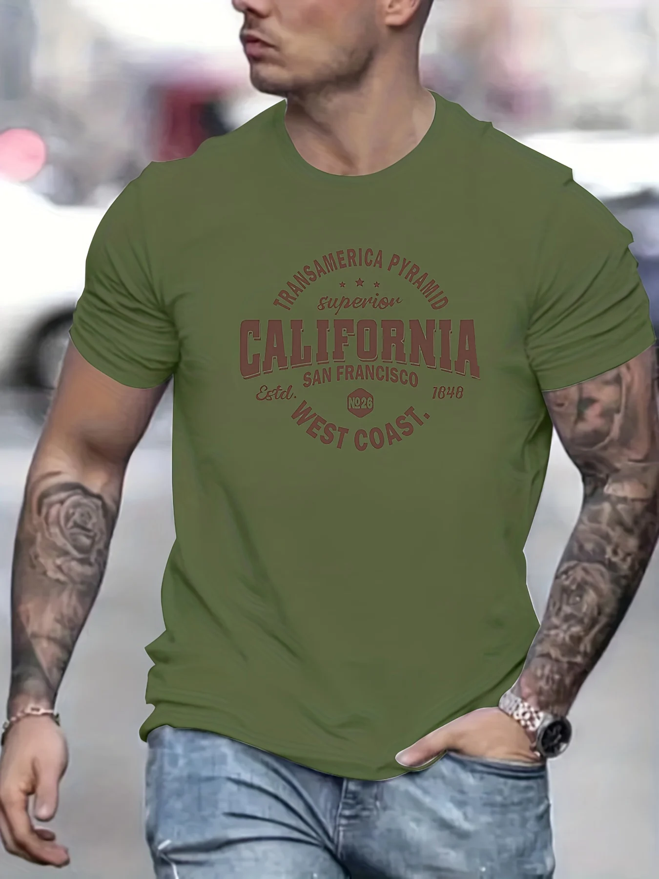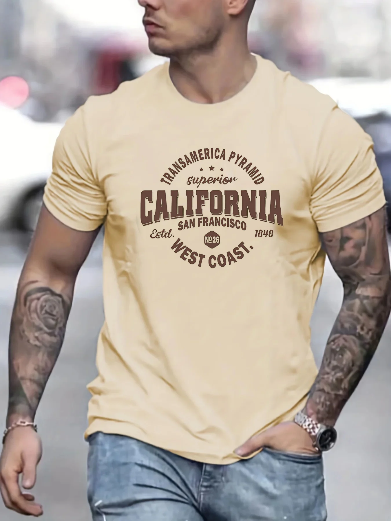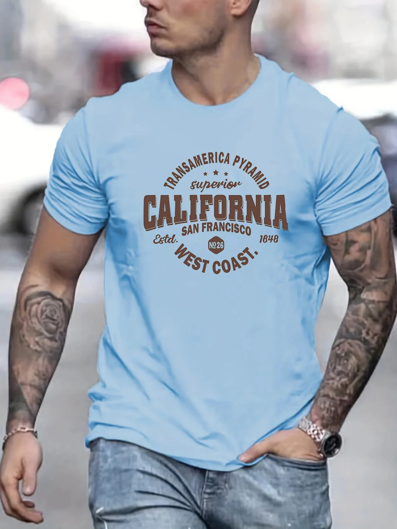 Men's 100% cotton casual sports loose fit California West Coast print round neck short sleeved T-shirt top