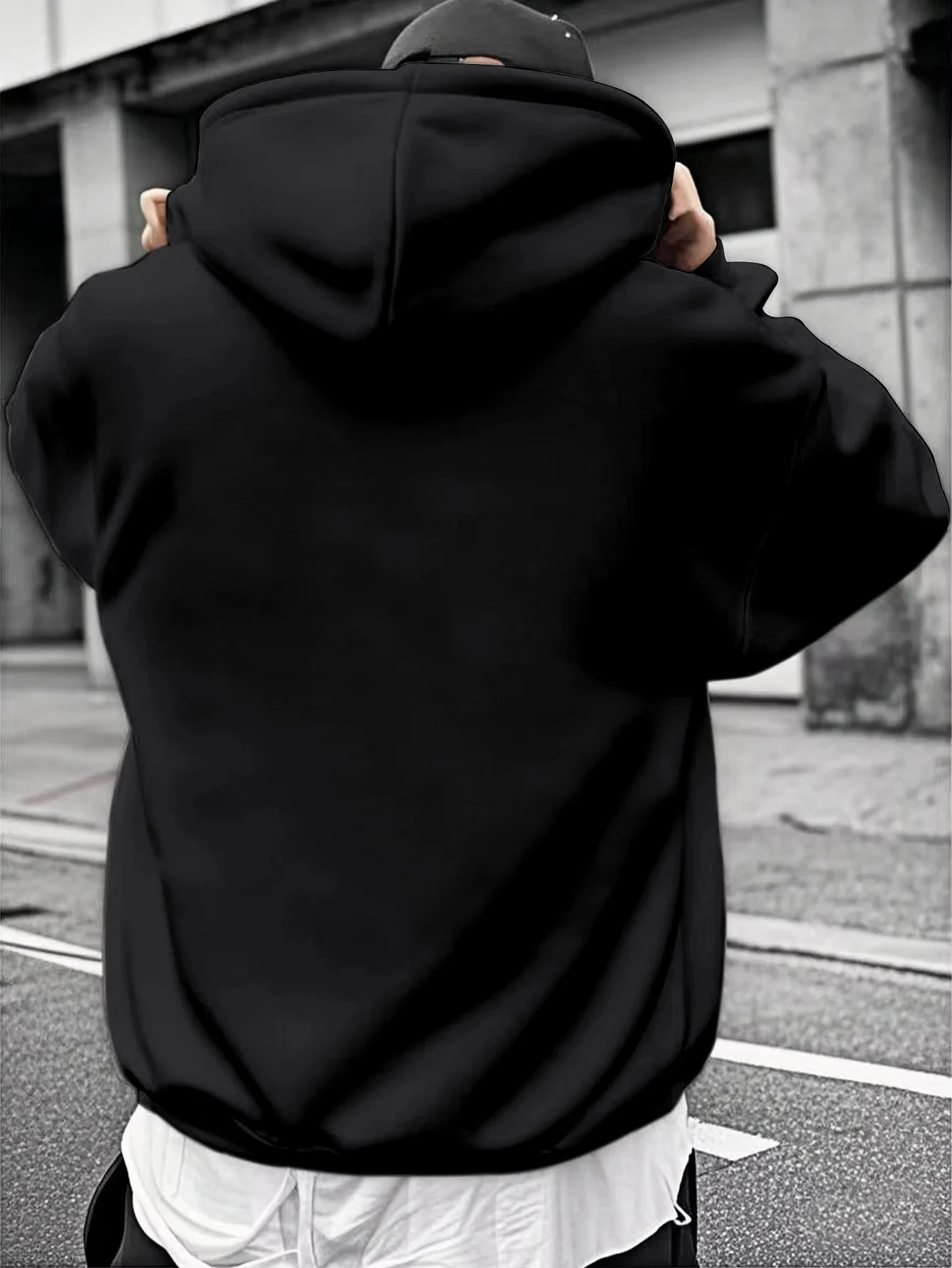 Men's Casual Winter Hooded Sweatshirt - Regular Fit, Machine Washable, Trendy Streetwear Pullover, Comfortable Knit Fabric