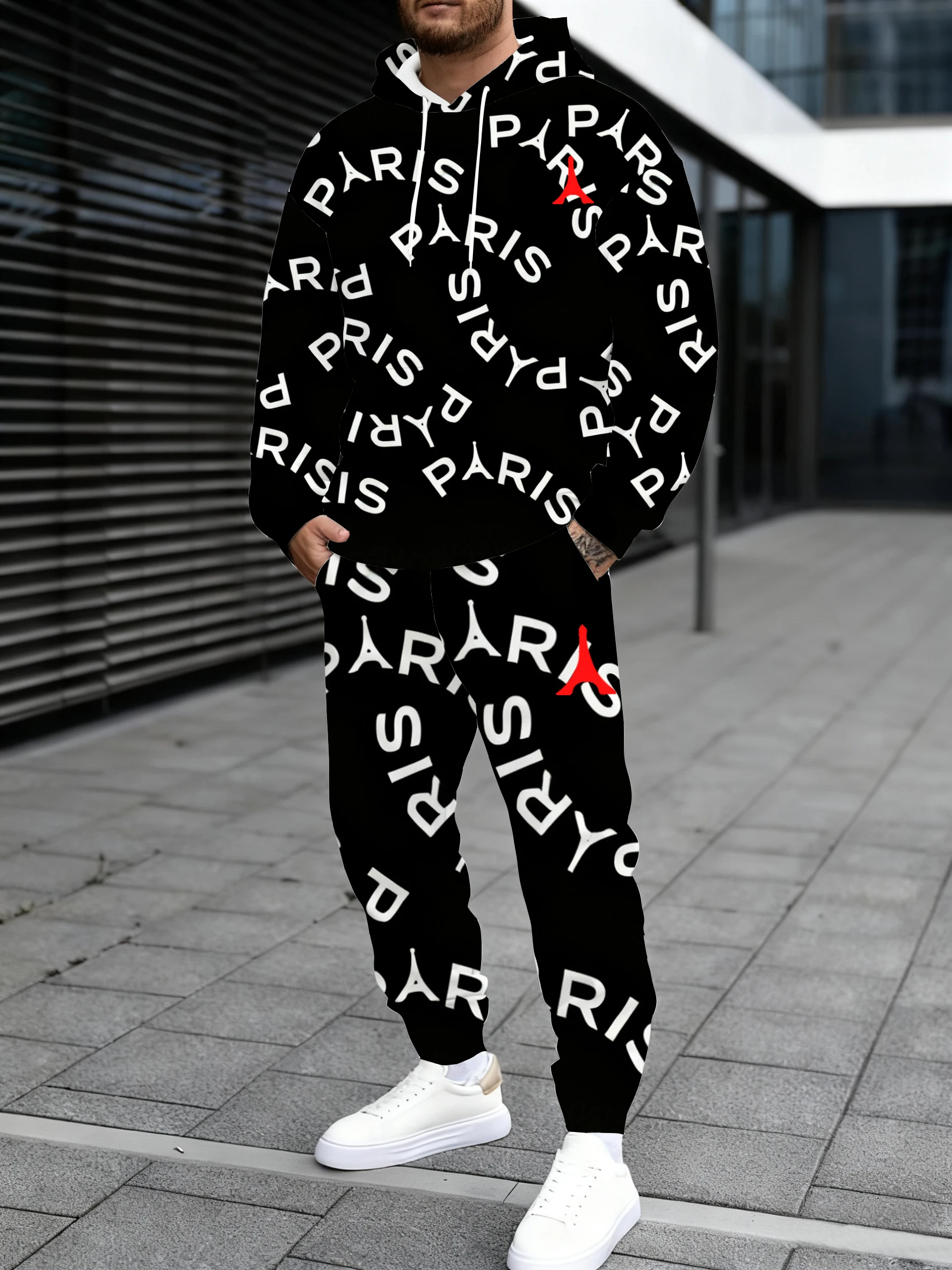 Men's hooded sweatshirt and sweatpants, with PARIS color-blocking combinations, are versatile for the street