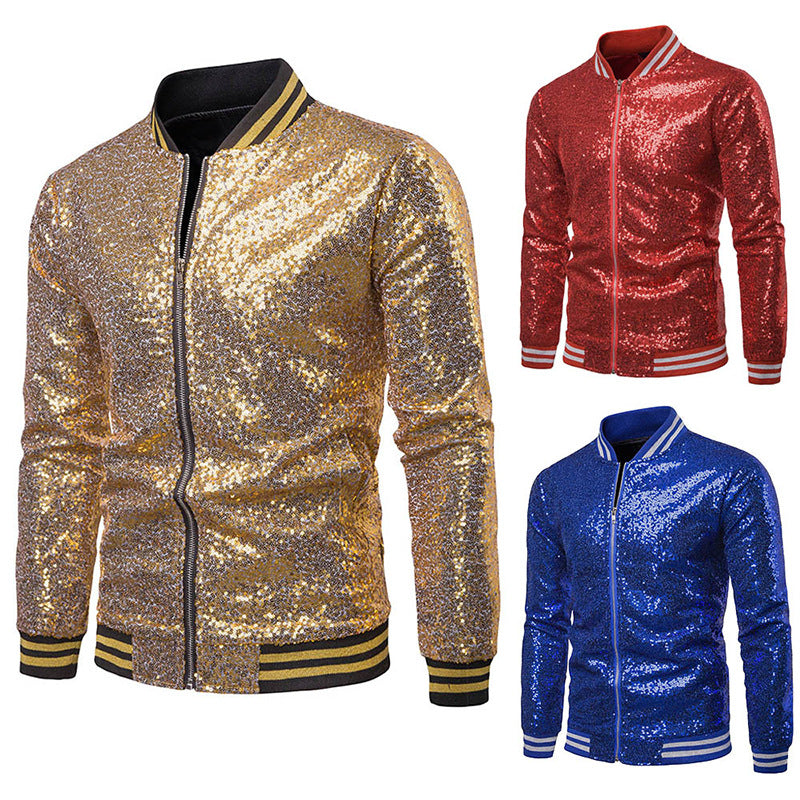 Mens Hoodies England Stand Collar Shiny Hoodie Men Zip Up Hip-Hop Male Baseball Hoody Men Stage Hooded Jacket B12