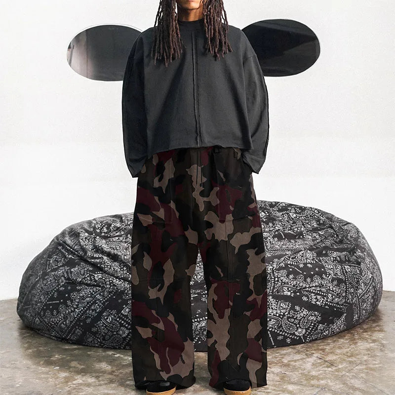 Men's loose long pants with large pockets for casual daily running, fitness and sports, camouflage pants, trendy men's long pant