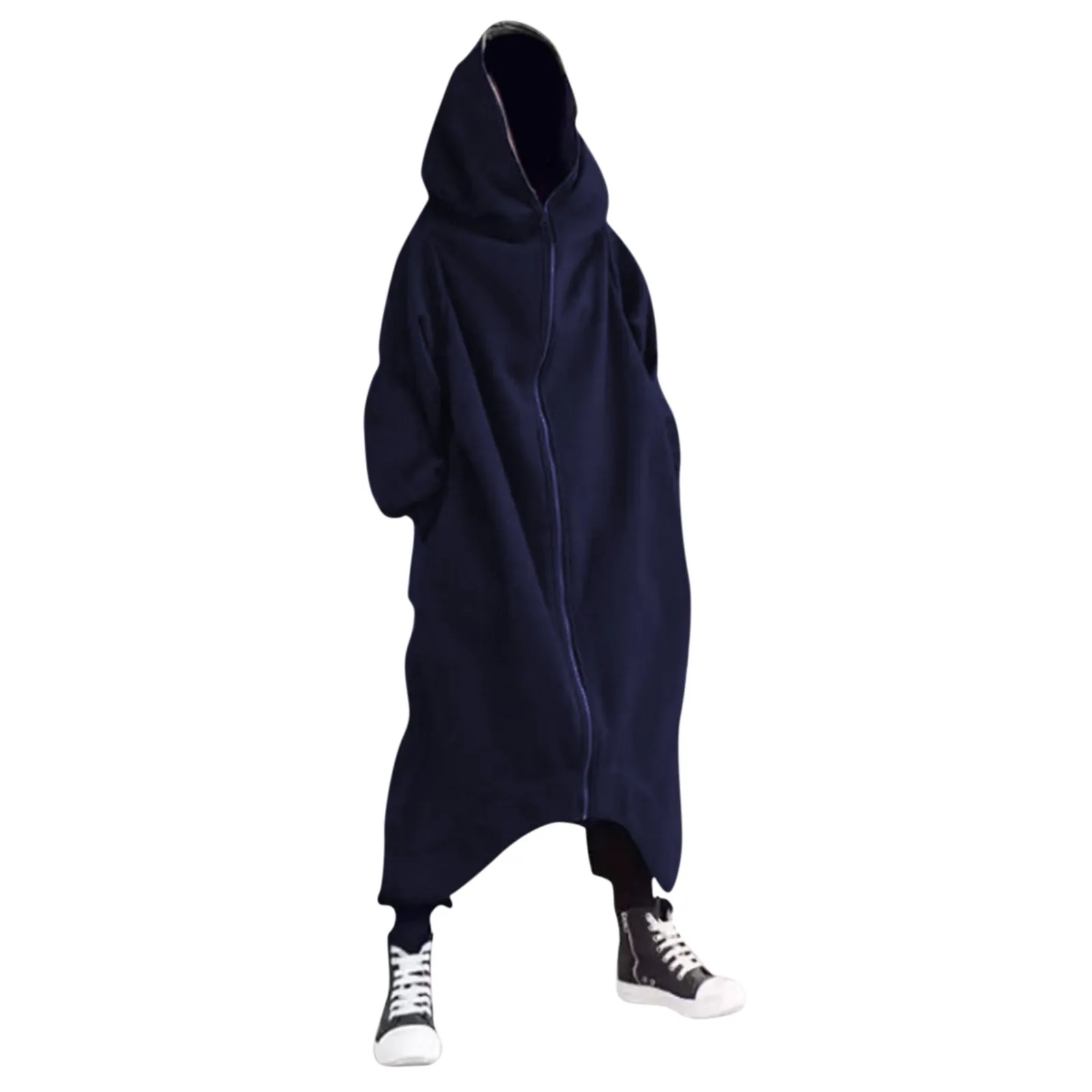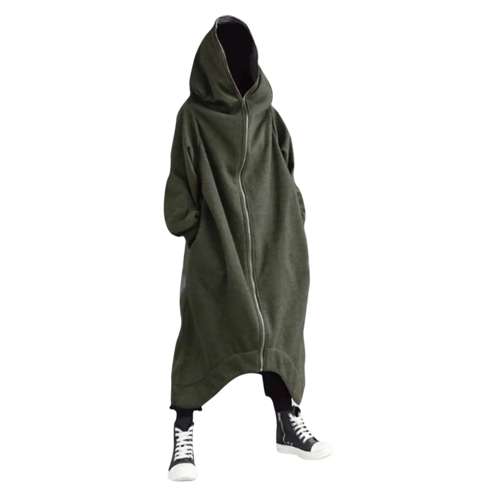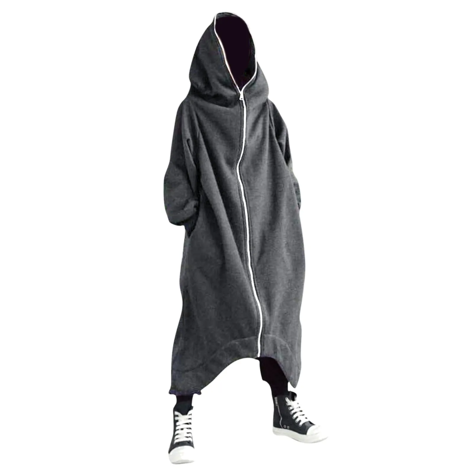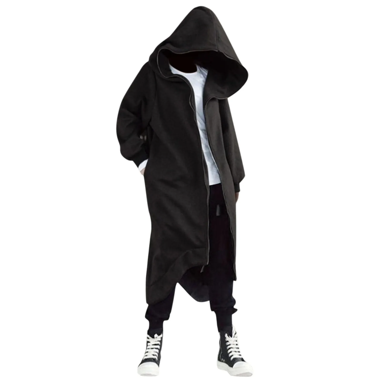 Men's Oversized Hoodies Outerwear Harajuku Fashion Dark Full Body Zip Up Hooded Sweatshirt Fashion Long Hooded Pullovers худи
