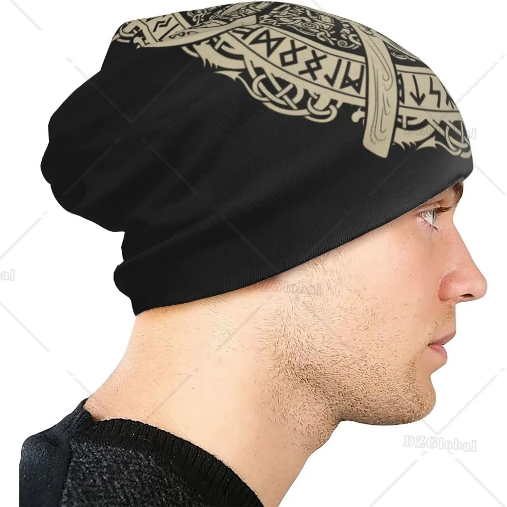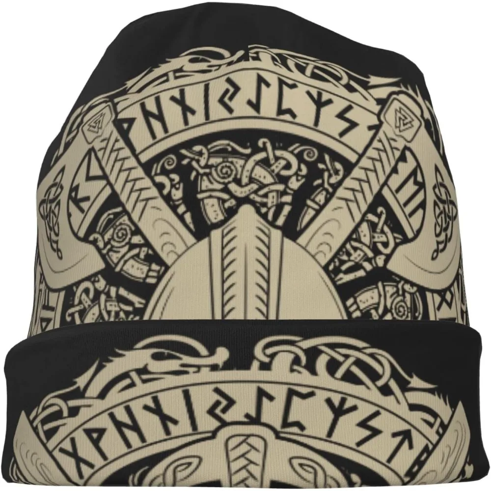 Men's Thin Beanie Caps Norse Rune Knit Hat Lightweight Slouchy Cap Scarf Headwear Autumn Winter Spring Casual Beanies Skull Hats