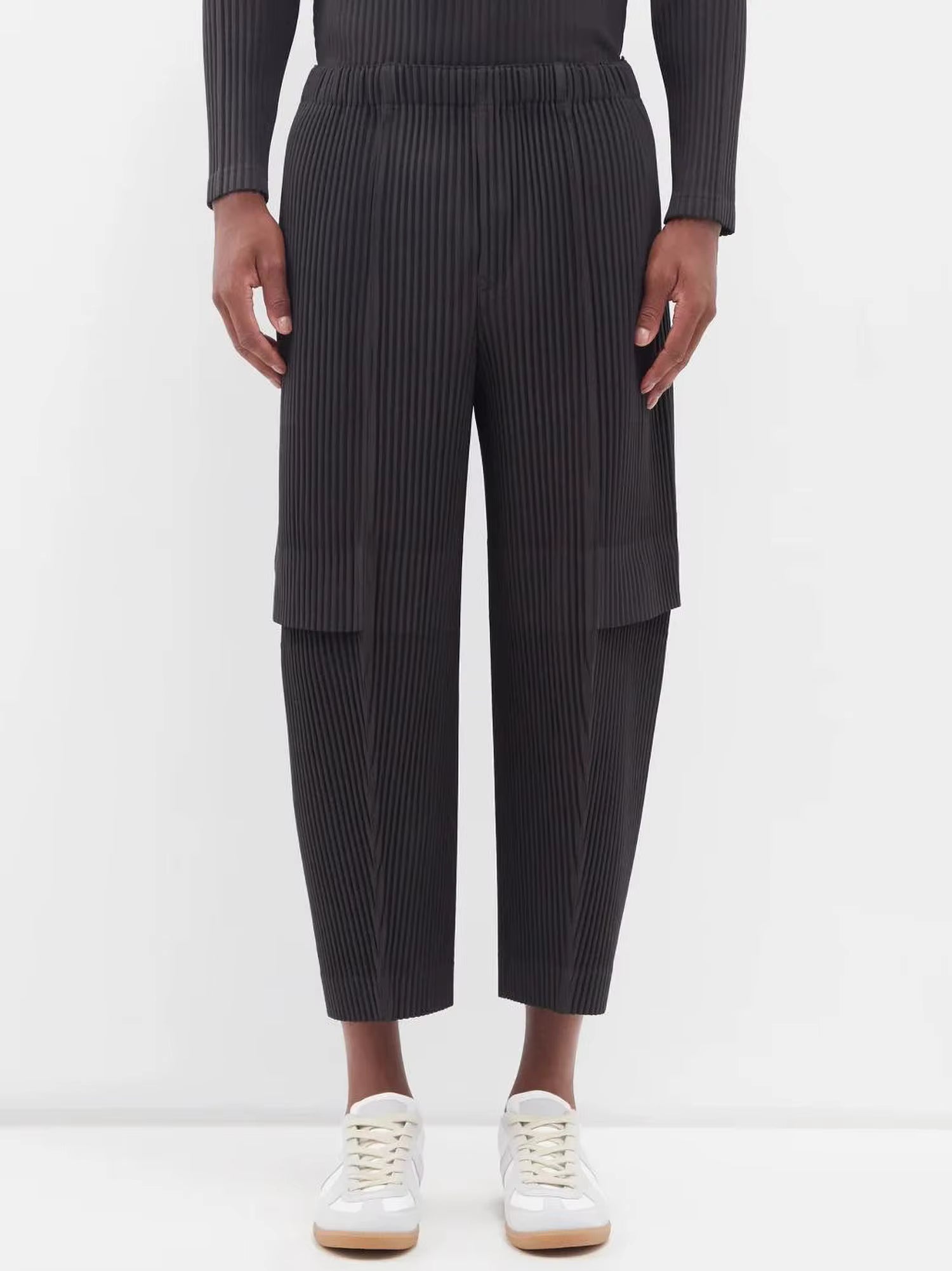 Miyake Pleated Men Cargo Pants Pleated Straight Pants Loose Overalls Men Baggy Black Trousers Fashion Casual Streetwear Pants