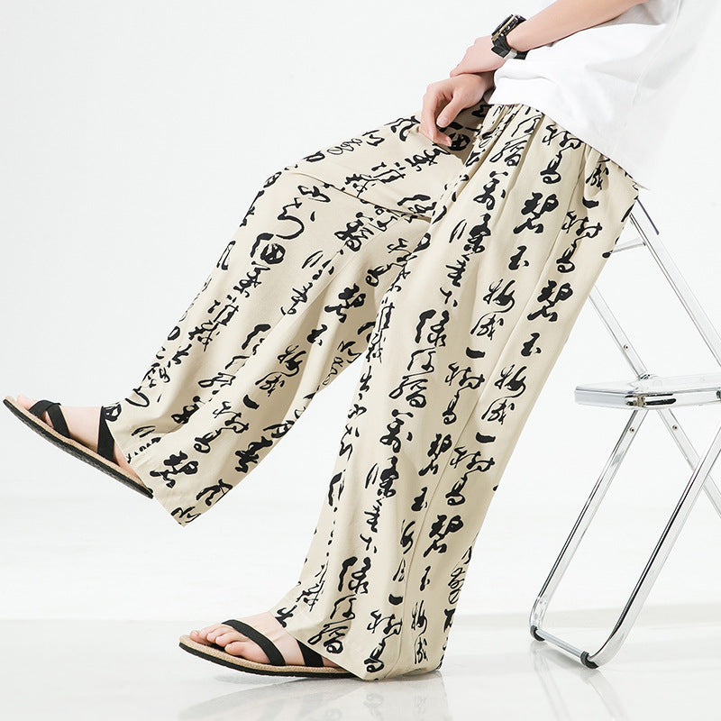 New Chinese Style Men's National Fashion Printing Straight-leg Trousers