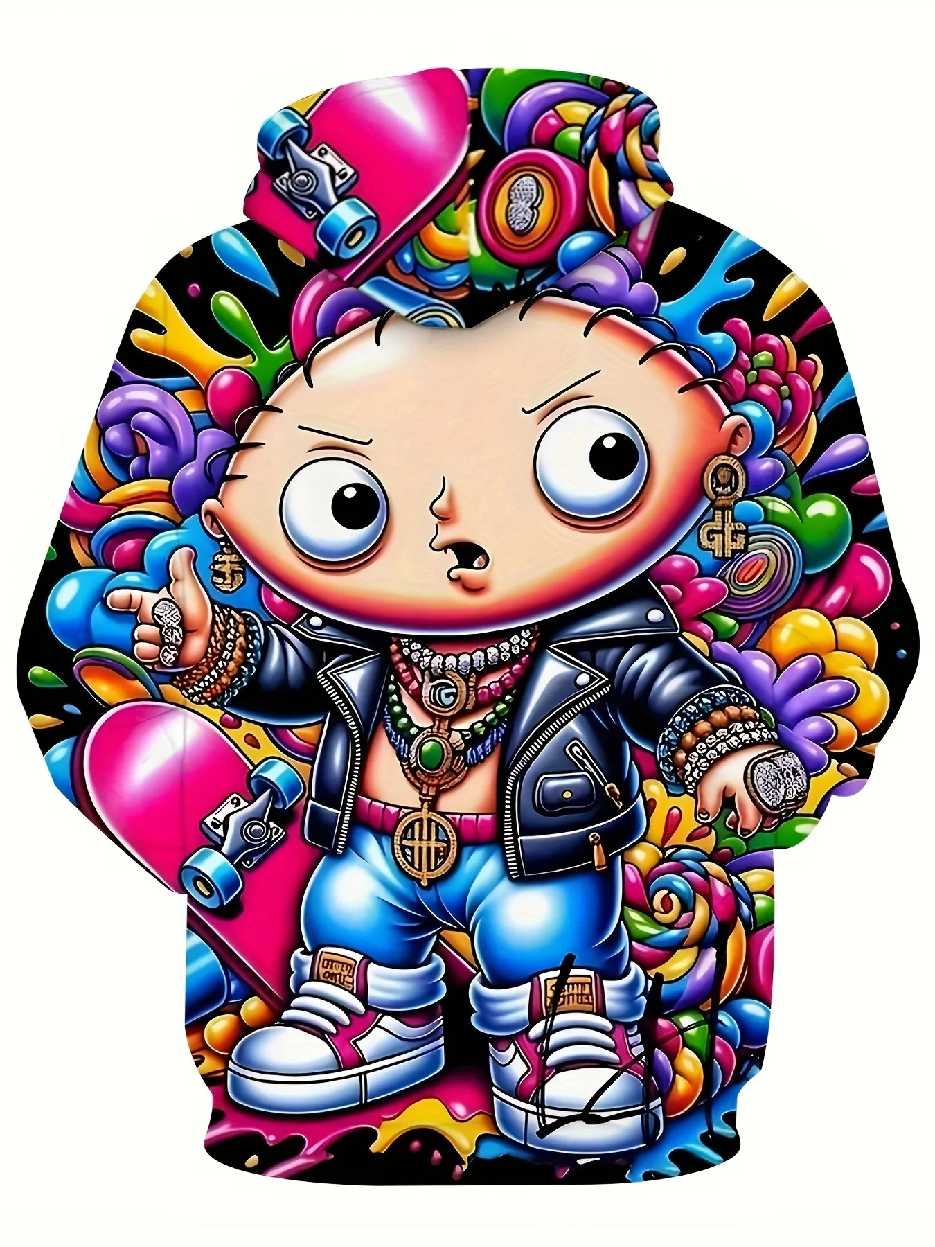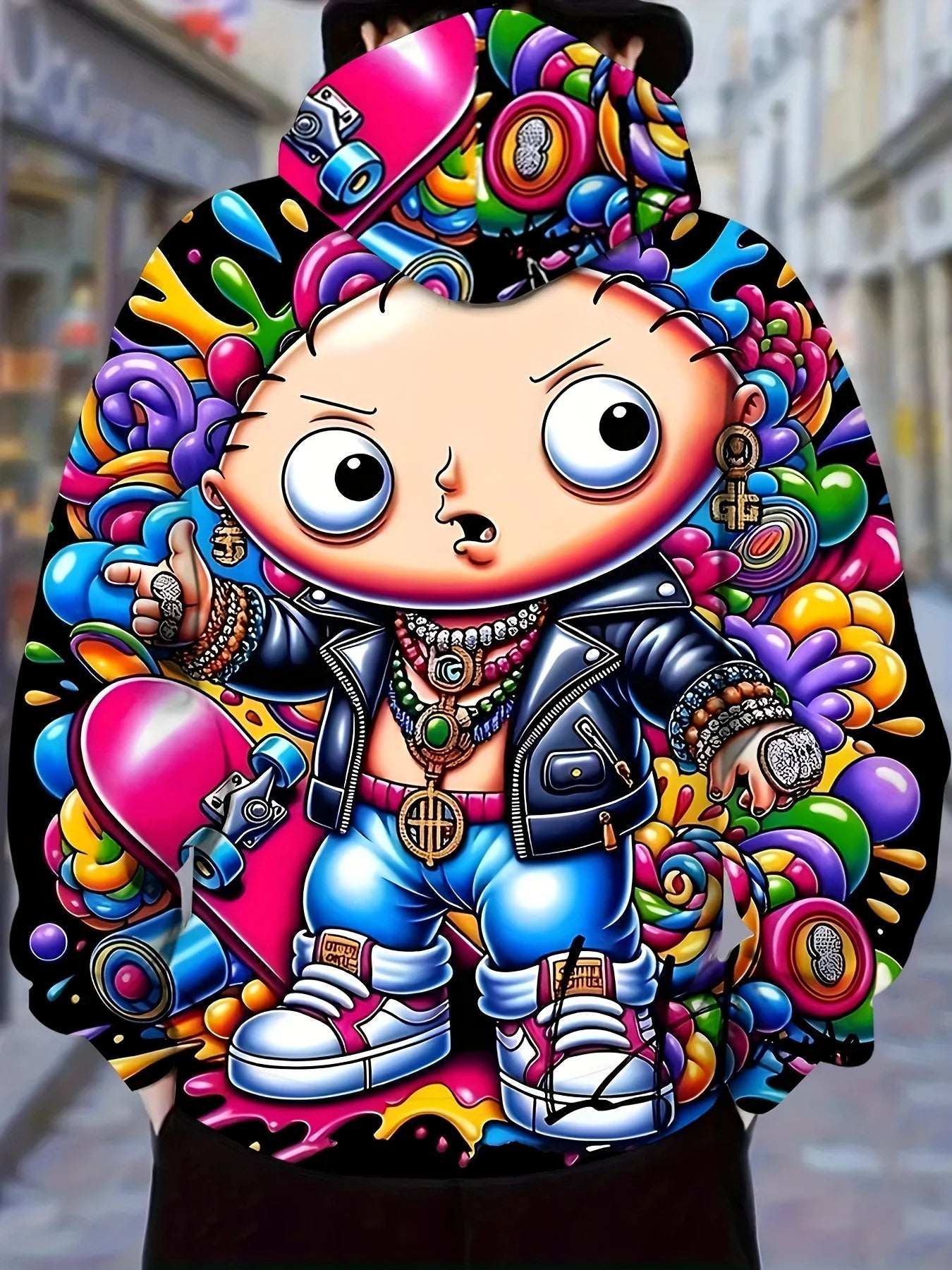 New Fashion Men's Hooded Sweatshirt | Comfortable & Versatile Casual Top with Graphic Print & Kangaroo Pocket for Spring/Fall
