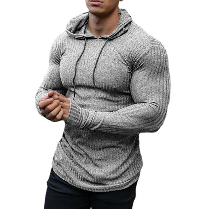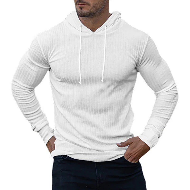 New Fashion Spring Autumn Hooded Sweaters Men Thin Knitted Gym Clothing Slim Fit Pullover Man Classic Ribbed Knit Hoodie Jumper