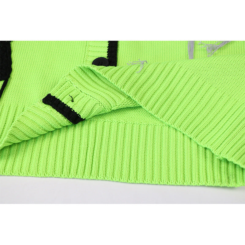 New Loose French V-neck Knitted Cardigan Women Cartoon Embroidery