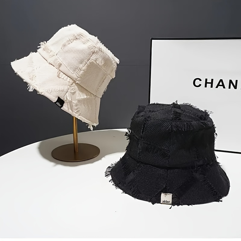 Raw Hem Distressed Bucket Hat Trendy Solid Color Basin Hats Lightweight Sunscreen Fisherman Cap For Women Men