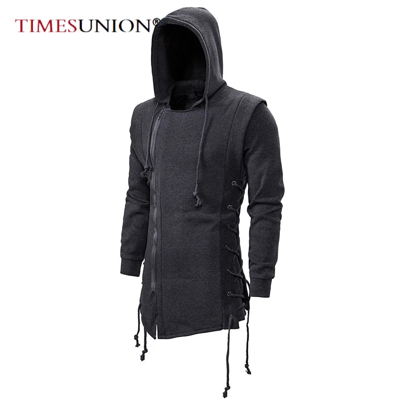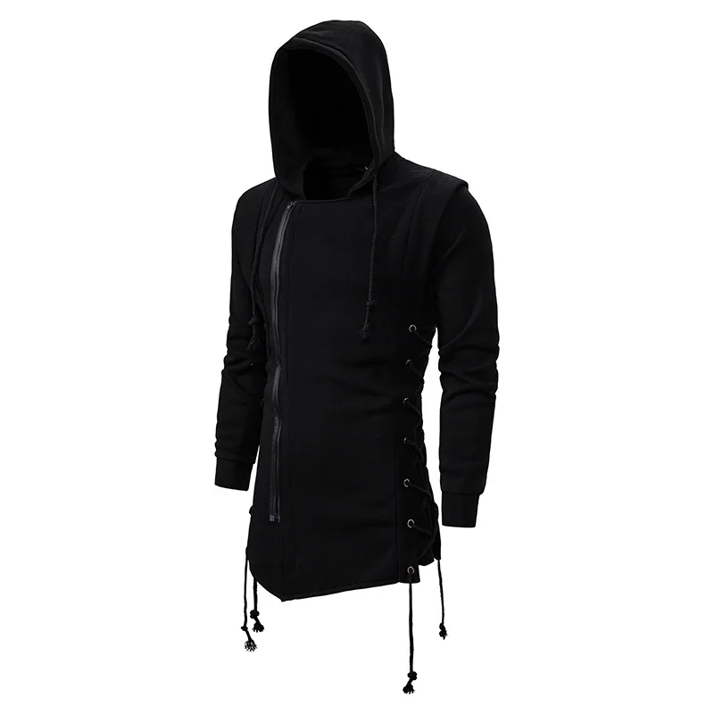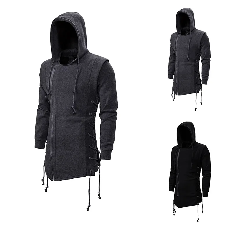Assassin's creed sweater coat dark tie hooded loose hooded hoodie with side tie crossed dark gray black hoodies