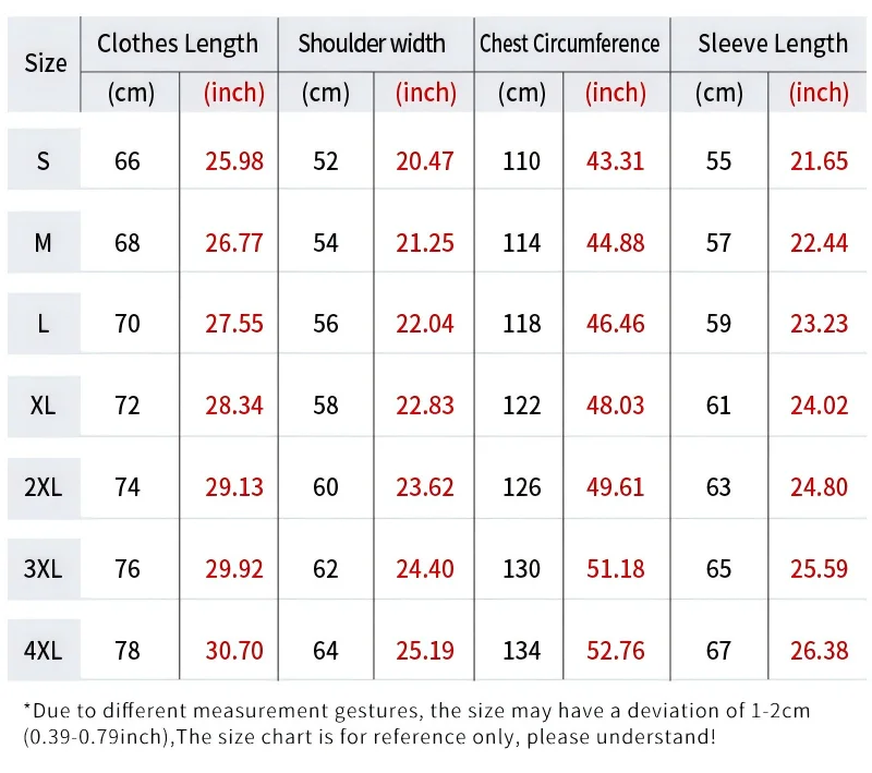 size_info: {"sizeInfoList":[{"length":{"cm":"66","inch":"25.98"},"size":"S","vid":-1},{"length":{"cm":"68","inch":"26.77"},"size":"M","vid":-2},{"length":{"cm":"70","inch":"27.56"},"size":"L","vid":-3},{"length":{"cm":"72","inch":"28.35"},"size":"XL","vid":-4},{"length":{"cm":"74","inch":"29.13"},"size":"2XL","vid":-5},{"length":{"cm":"76","inch":"29.92"},"size":"3XL","vid":-6},{"length":{"cm":"78","inch":"30.71"},"size":"4XL","vid":-7}]}