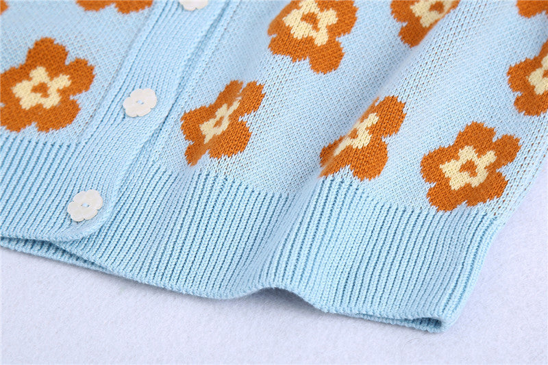 Women's New Flower Pattern Jacquard Knit Sweater Cardigan Jacket