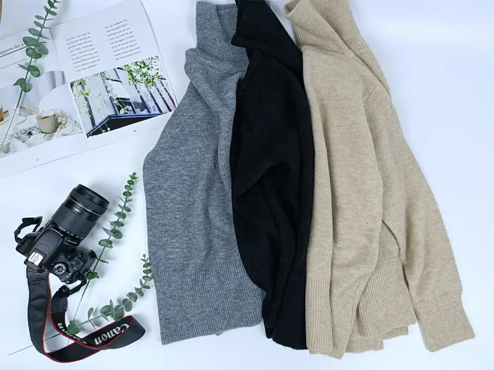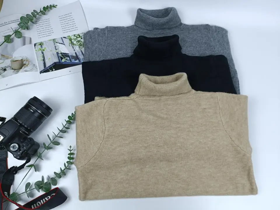 Women's Turtleneck Sweater Autumn Winter Korean Fashion Loose Black Long Sleeve Top Solid Color Simple Casual Women Pulovers